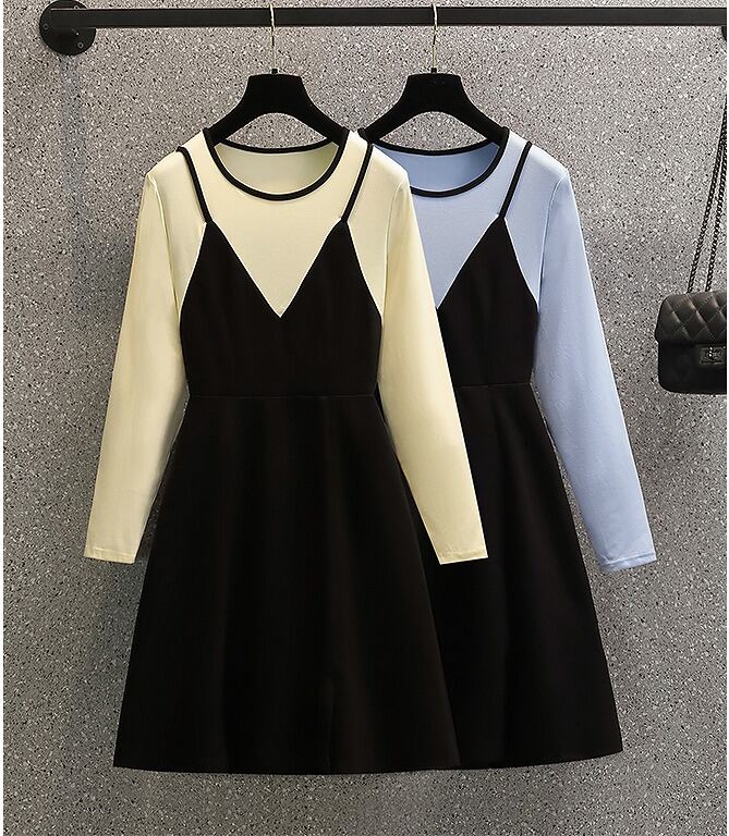 【大きいサイズL-4XL】【秋冬新作】ファッションワンピース♪アンズ/ライトブルー2色展開◆#schmnf-272227