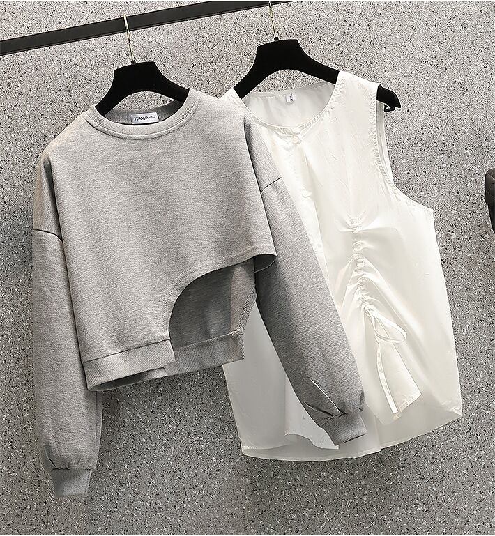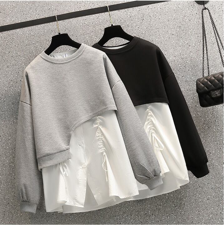 【大きいサイズL-4XL】【秋冬新作】ファッション/2枚セットトップス♪グレー/ブラック2色展開◆#schmnf-225617