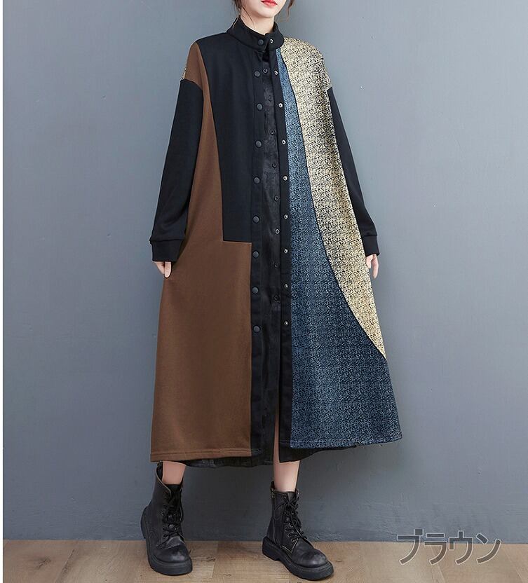 【秋冬新作】ファッションワンピース♪ブラウン/グリーン2色展開◆#secmio-212697