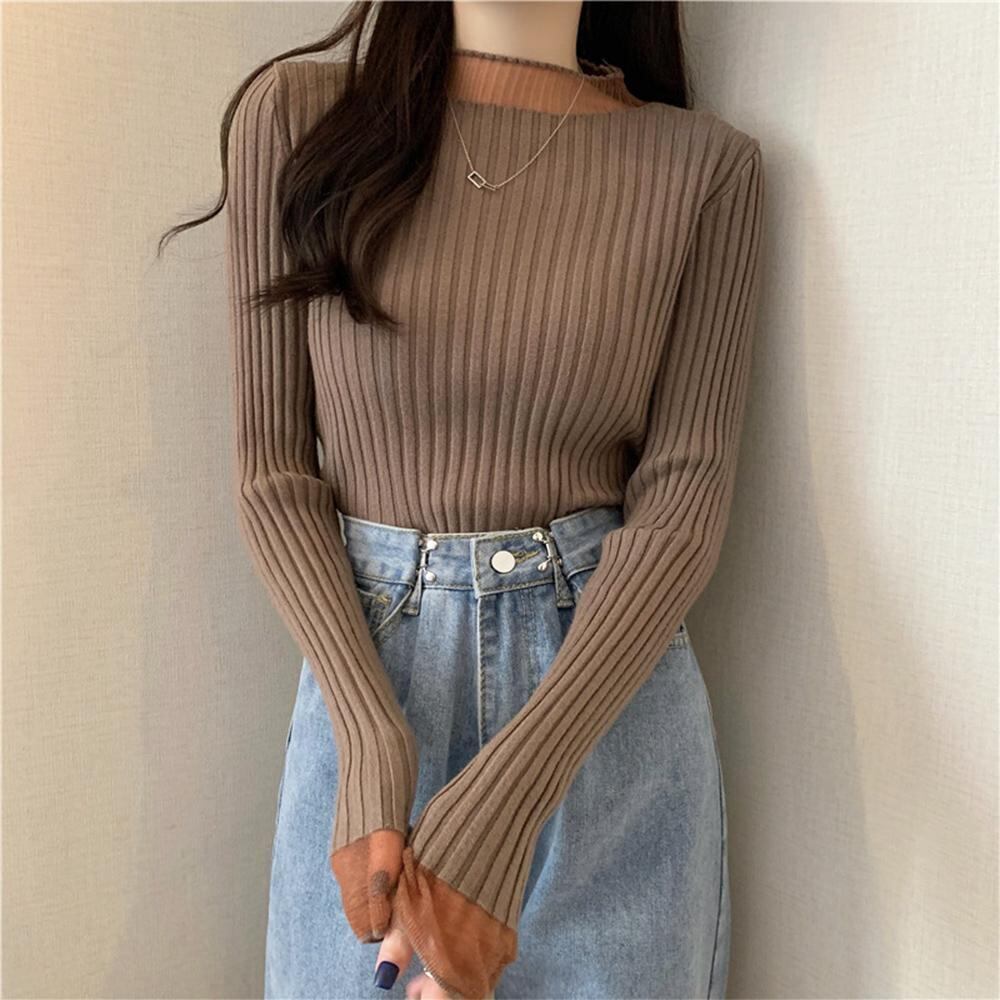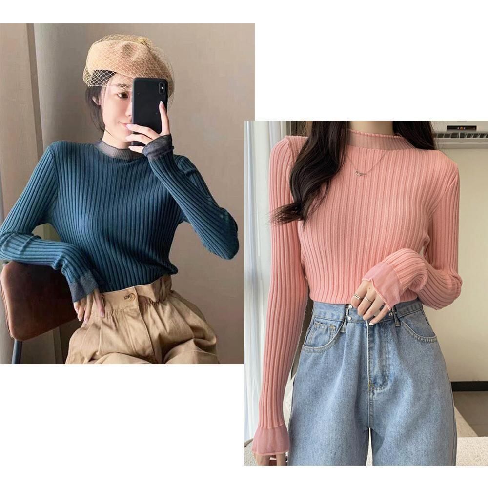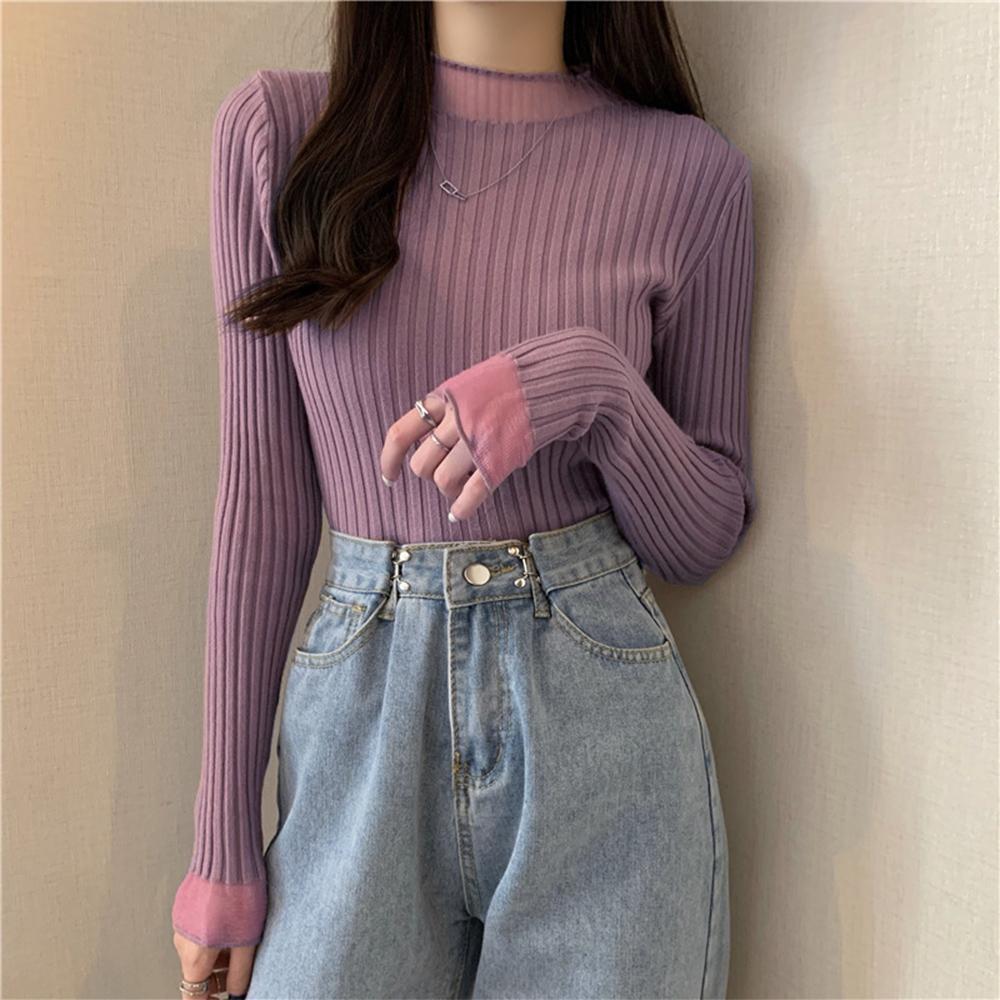 リブニット プチハイネック レディース ニットプルオーバー ニットセーター おしゃれ トップス長袖