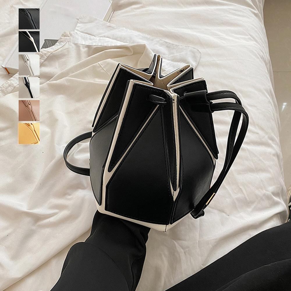 PUレザーバケツバック 六角形鞄2WAY 斜め掛け 肩掛けバッグ お洒落ハンドバッグ きれいめデザインバッグ コンパクト