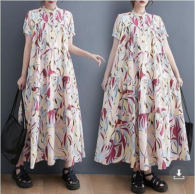 大きいサイズ レディース ロング ワンピース 春夏 秋 新品 半袖