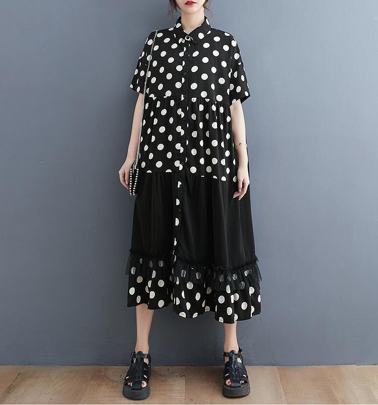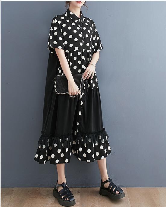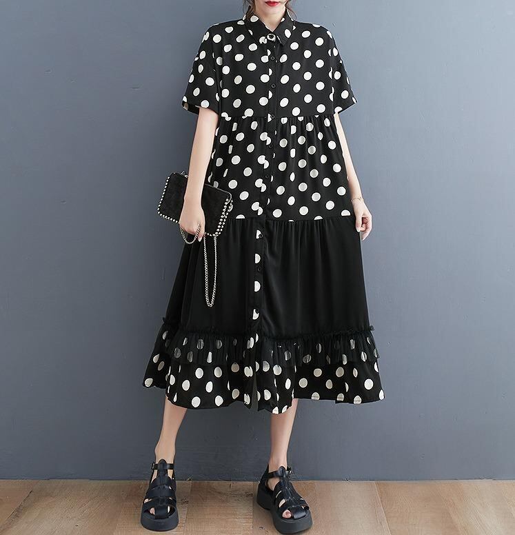 大きいサイズ レディース ワンピース ドット 春夏 秋 新品 半袖