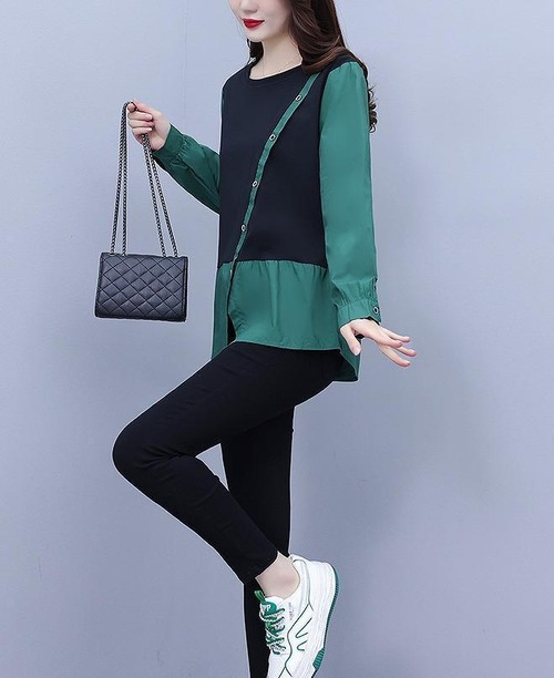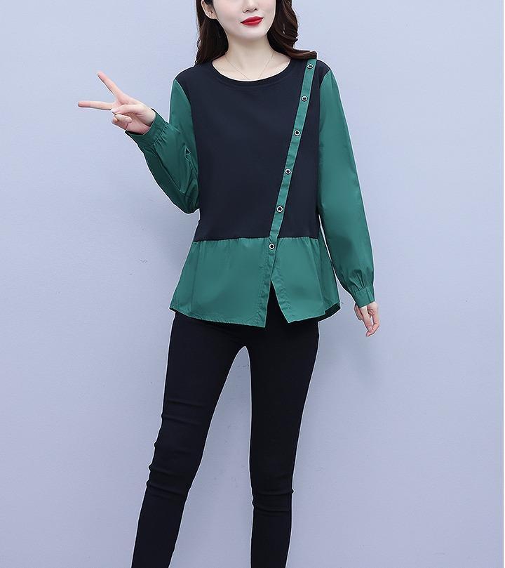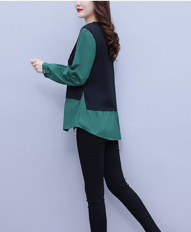 【即納】大きいサイズ レディース トップス シャツ グリーン 春夏 秋 新品 長袖