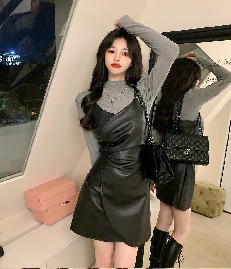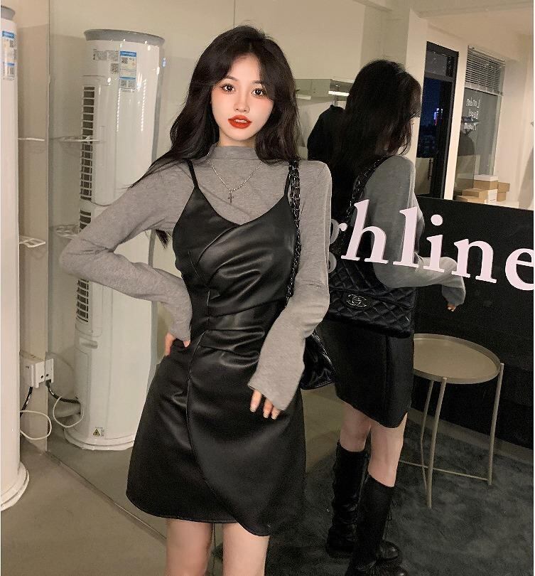 大きいサイズ レディース エコレザー ワンピース フェイクレザー 新品