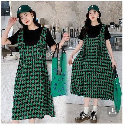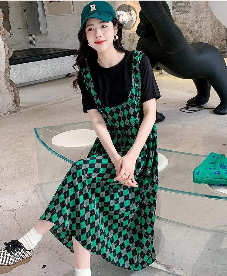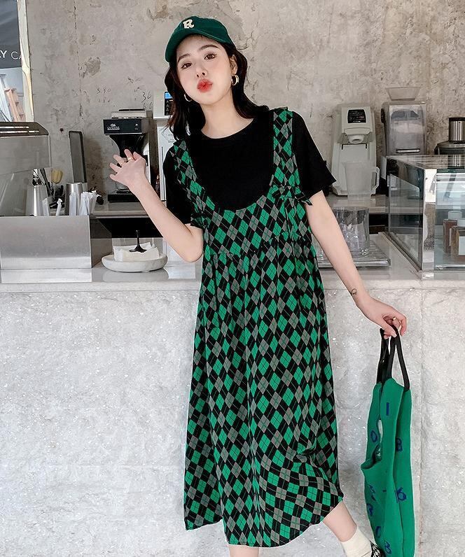大きいサイズ レディース ワンピース グリーン 重ね着風 春夏 秋 新品 半袖
