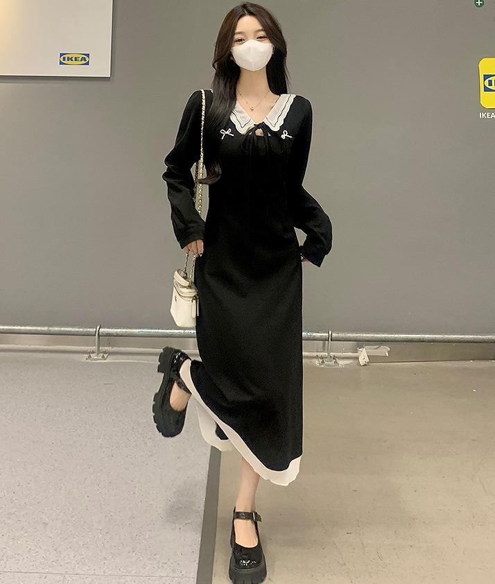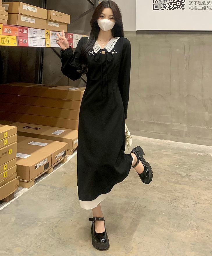 大きいサイズ レディース ワンピース モノトーン 春夏 秋 新品 長袖