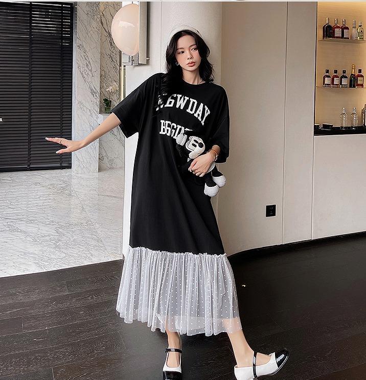 大きいサイズ レディース ロング ワンピース レース裾 春夏 秋 新品 半袖
