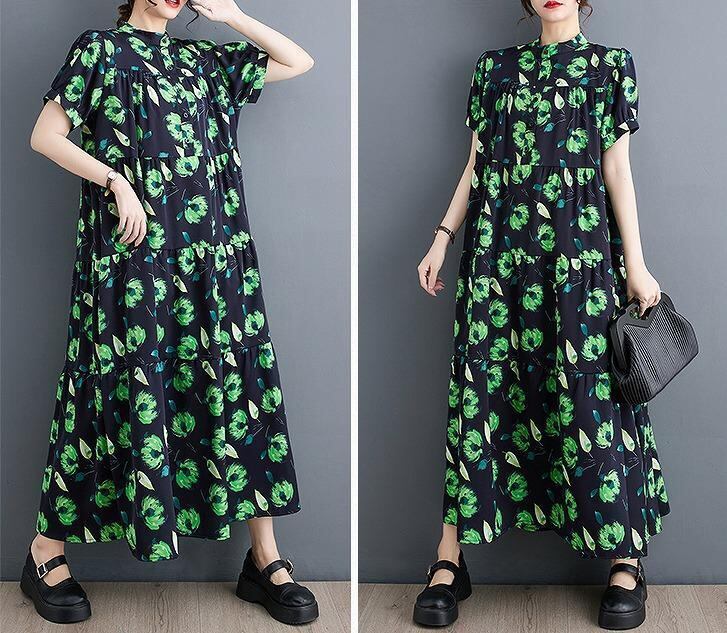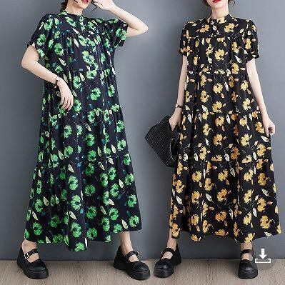 大きいサイズ レディース ワンピース 花柄 ロング 春夏 秋 新品 半袖