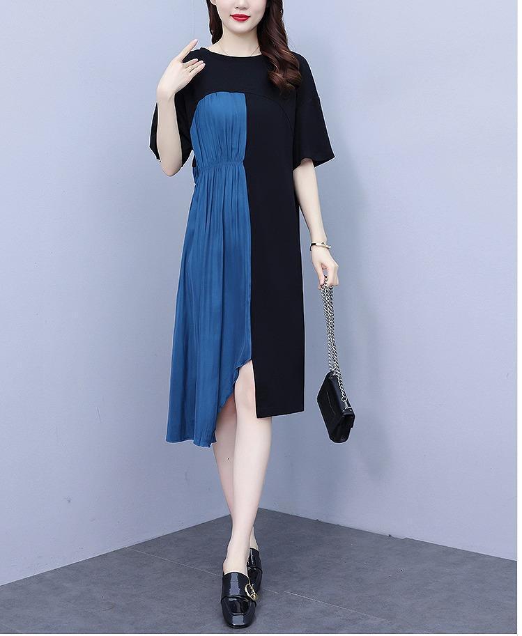 大きいサイズ レディース ワンピース ブルー 春夏 秋 新品 半袖