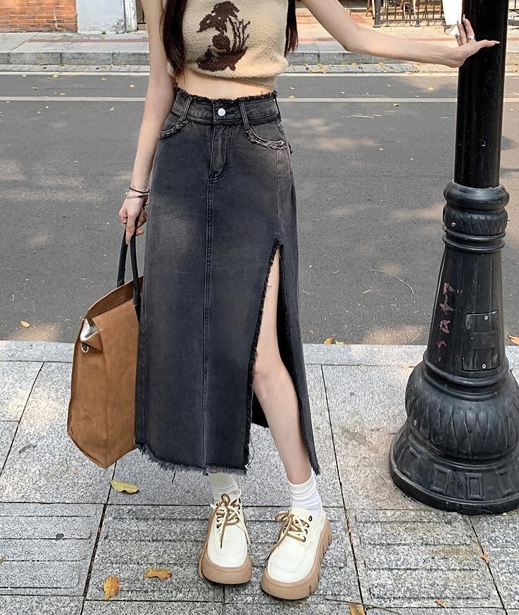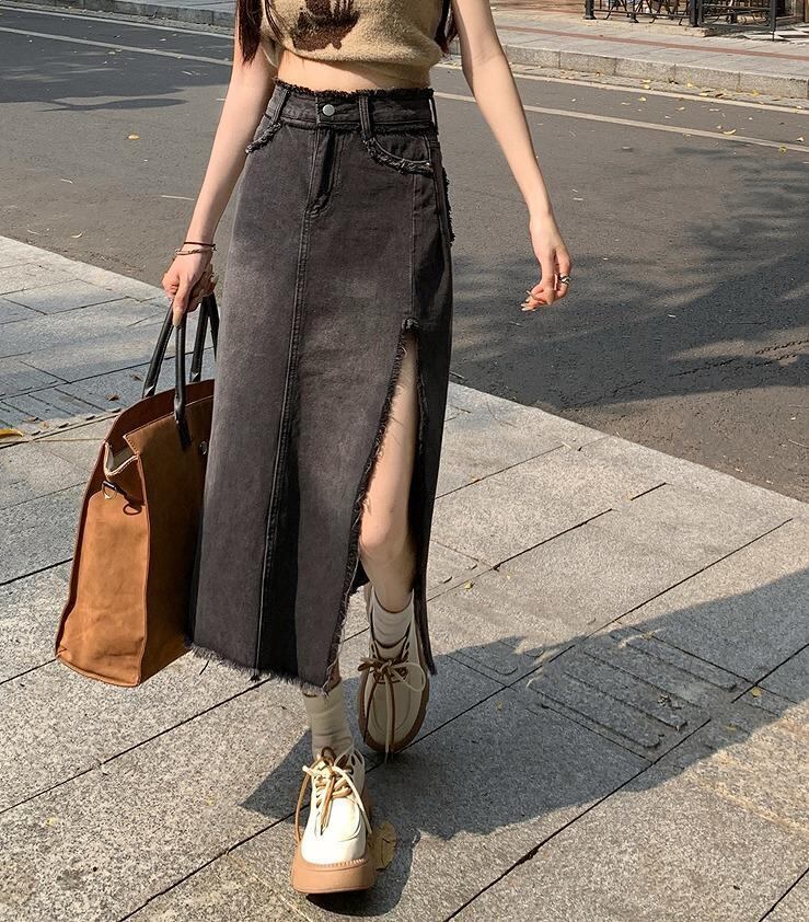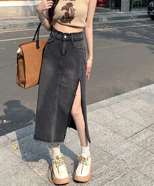 大きいサイズ レディース デニムスカート スリット 春夏 秋 新品