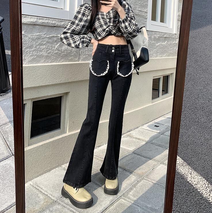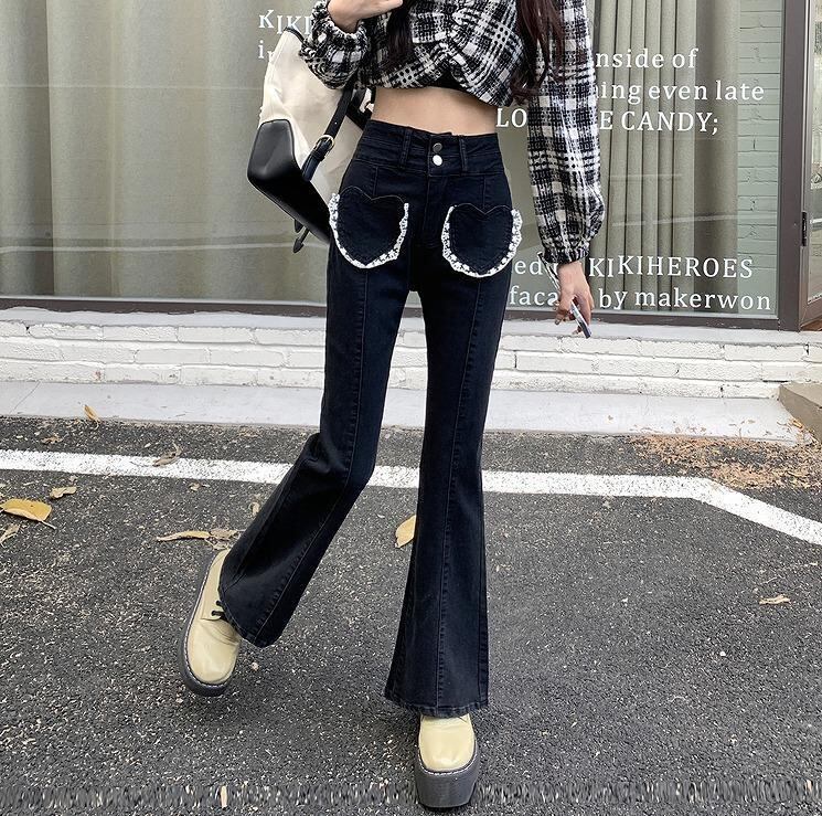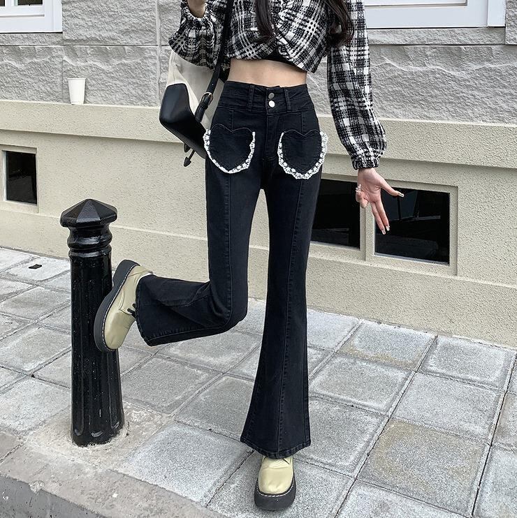 ハート刺繍がキュートなデニムパンツ。