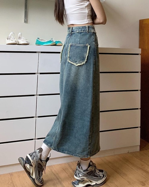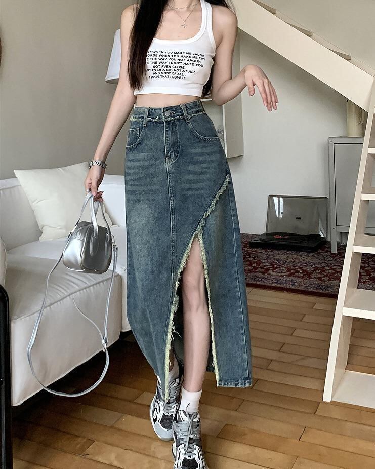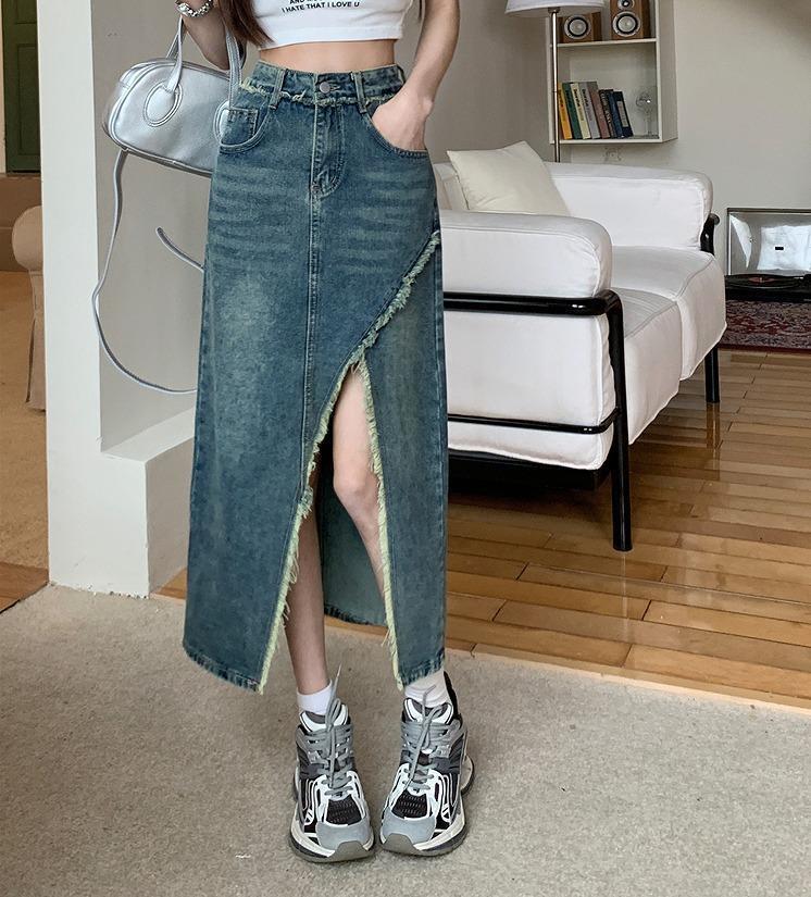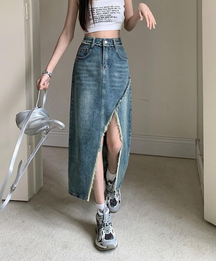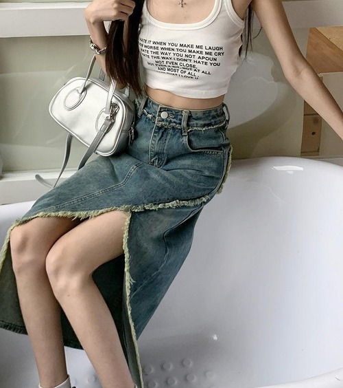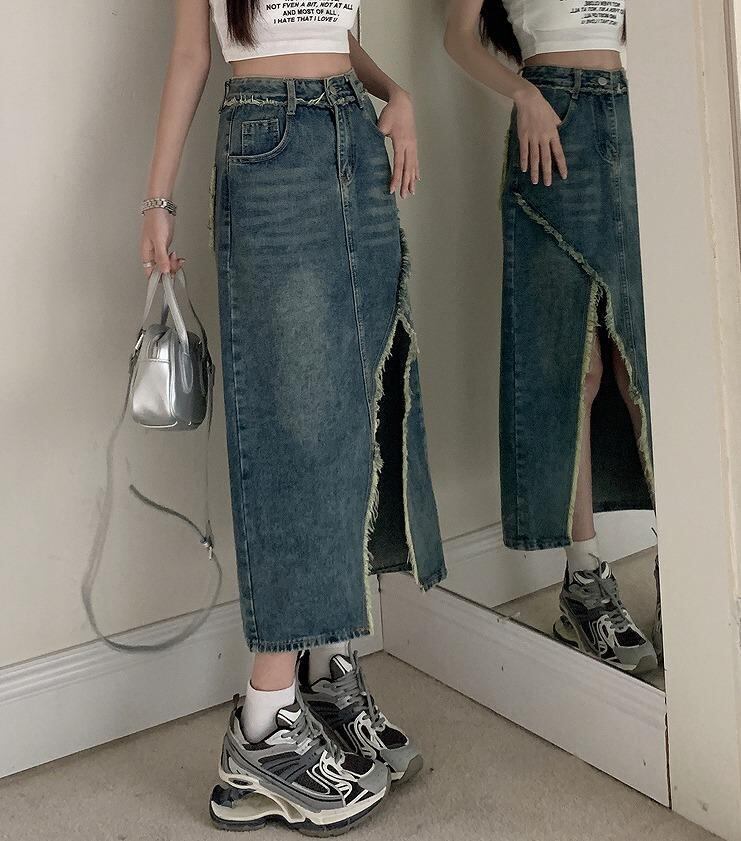 大きいサイズ レディース デニムスカート スリット カットオフ 春夏 秋 新品