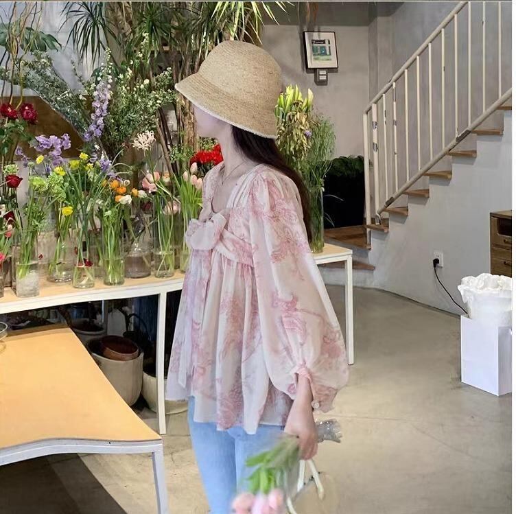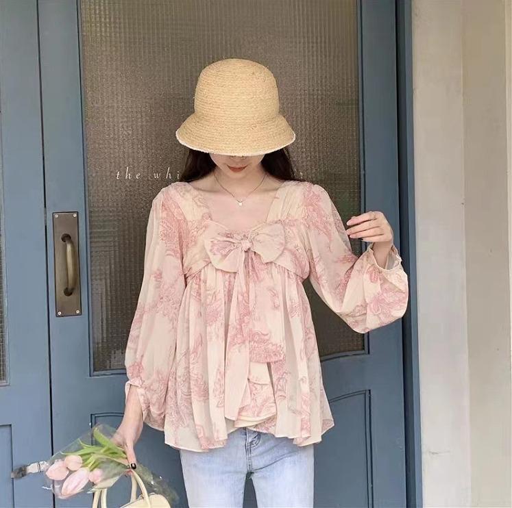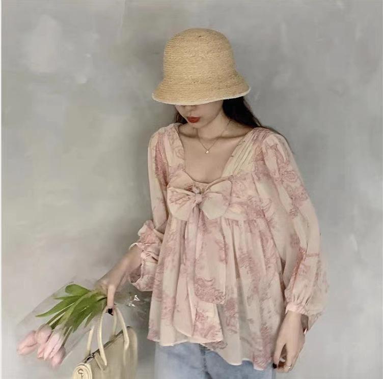 大きいサイズ レディース トップス シフォン ピンク 春夏 秋 新品 長袖