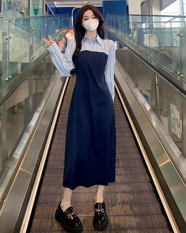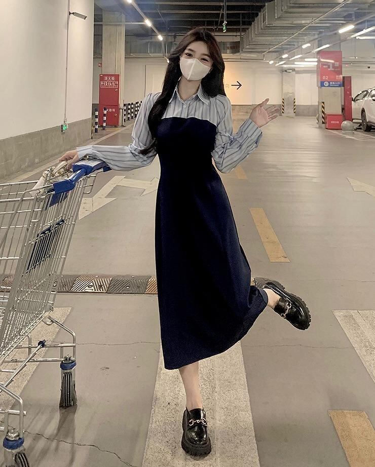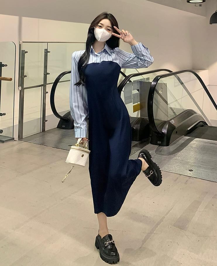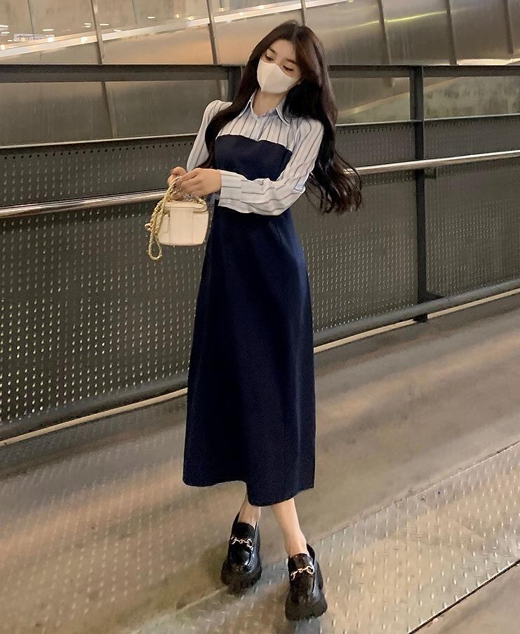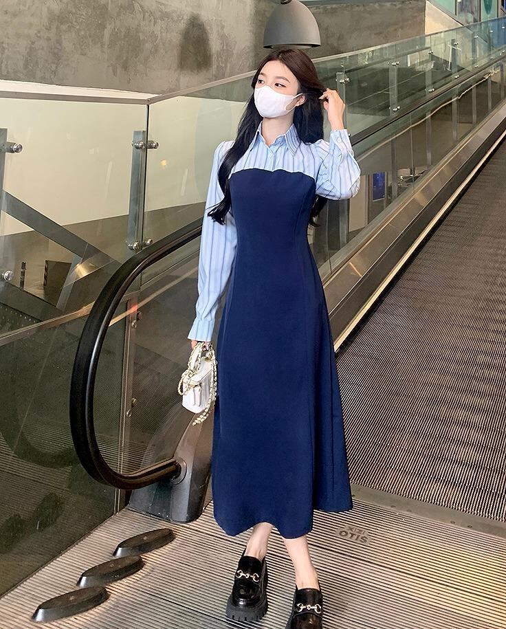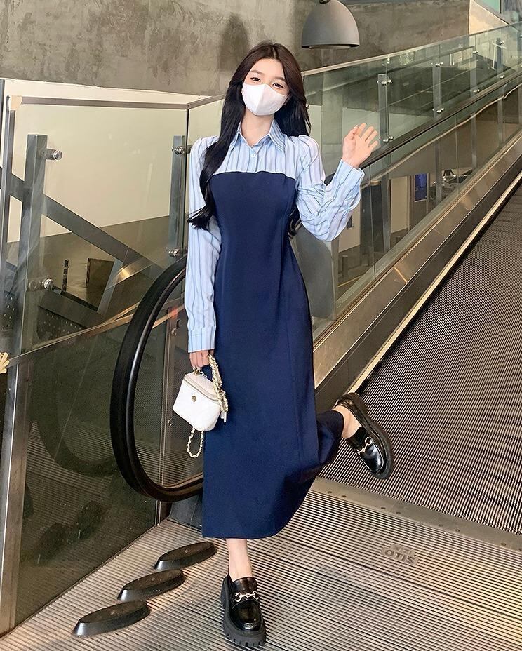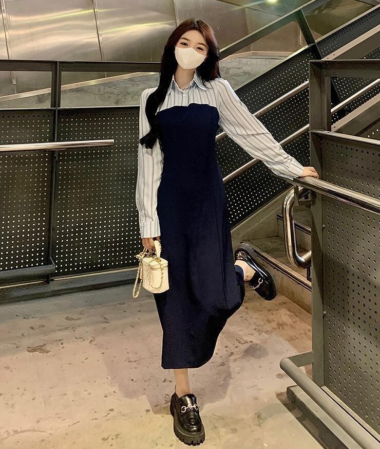 大きいサイズ レディース ワンピース ストライプ 春夏 秋 新品 長袖