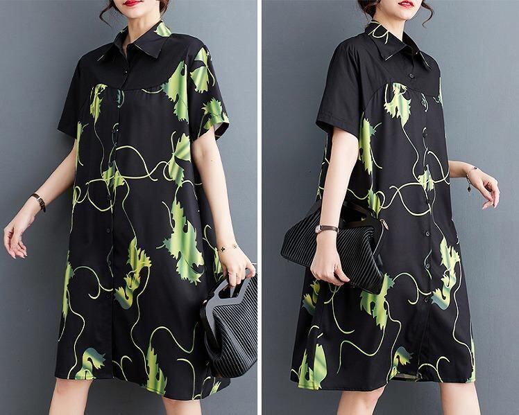 大きいサイズ レディース ワンピース シャツ グリーン 春夏 秋 新品 半袖