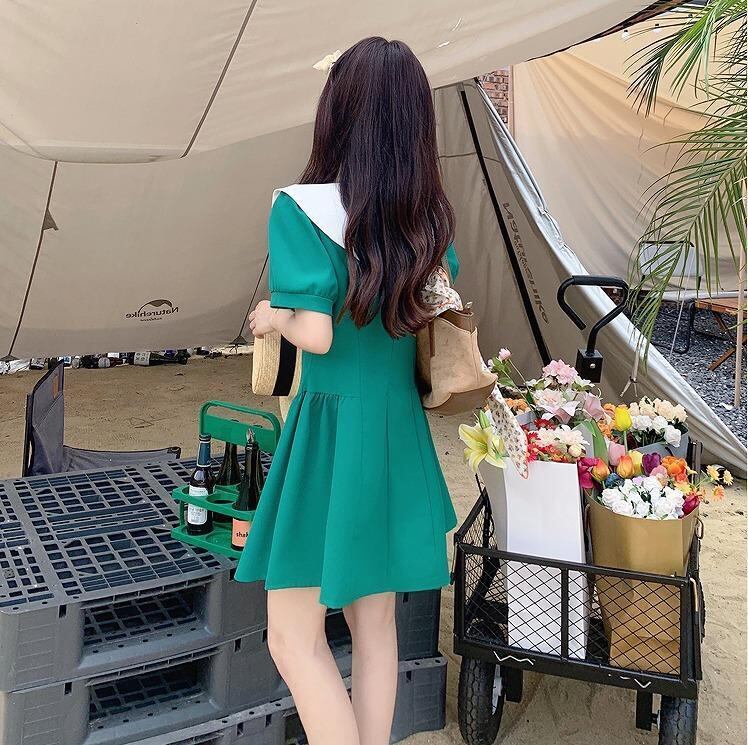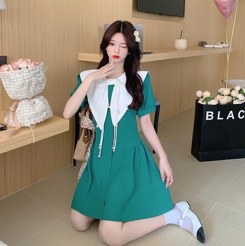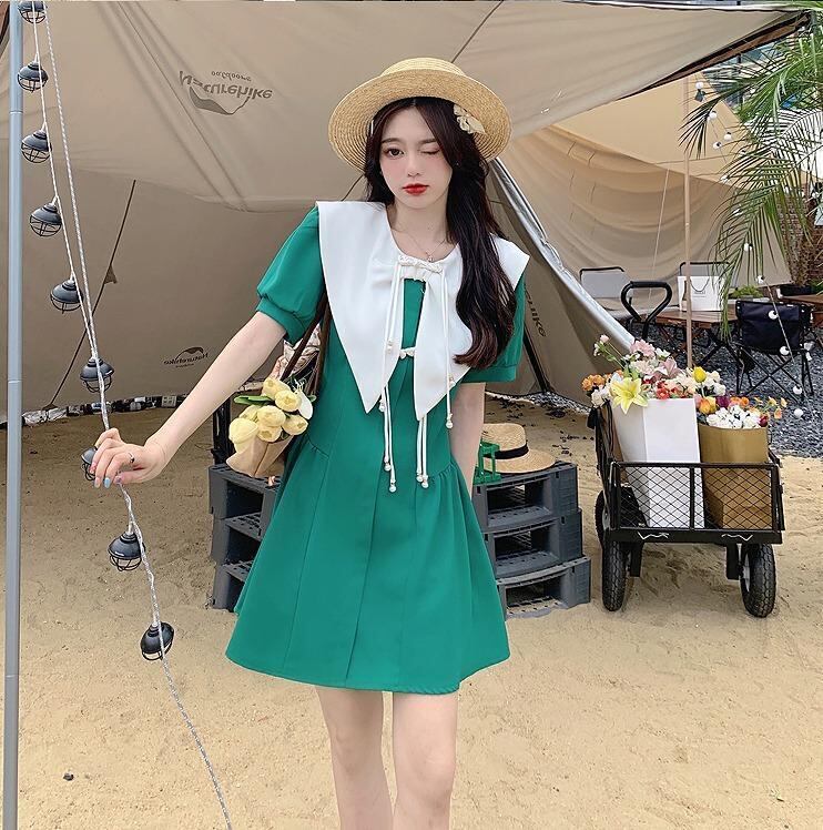 大きいサイズ レディース ワンピース 襟付き グリーン 春夏 秋 新品 半袖