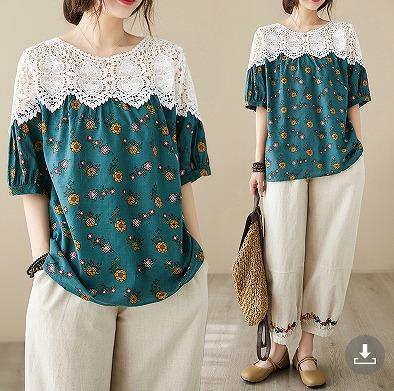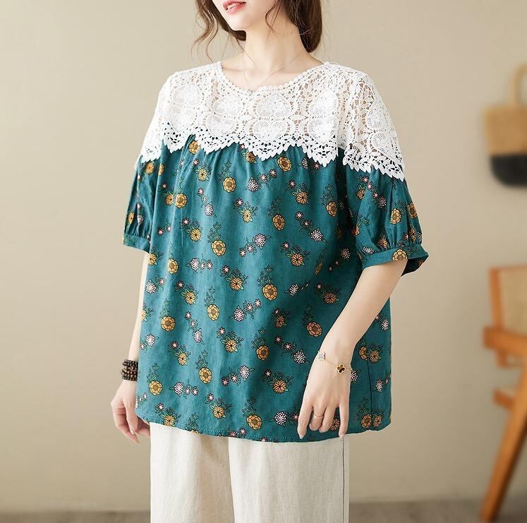 大きいサイズ レディース トップス レース グリーン 春夏 秋 新品 半袖