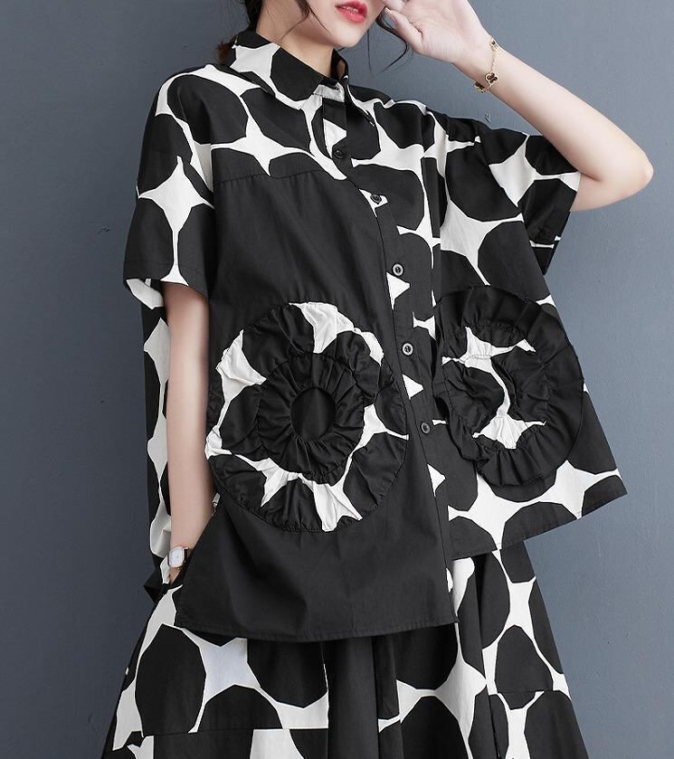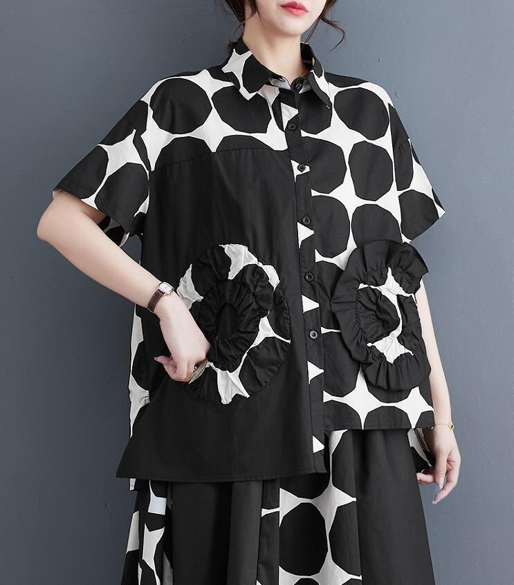 大きいサイズ レディース トップス シャツ ドット 春夏 秋 新品 半袖