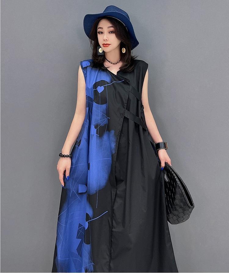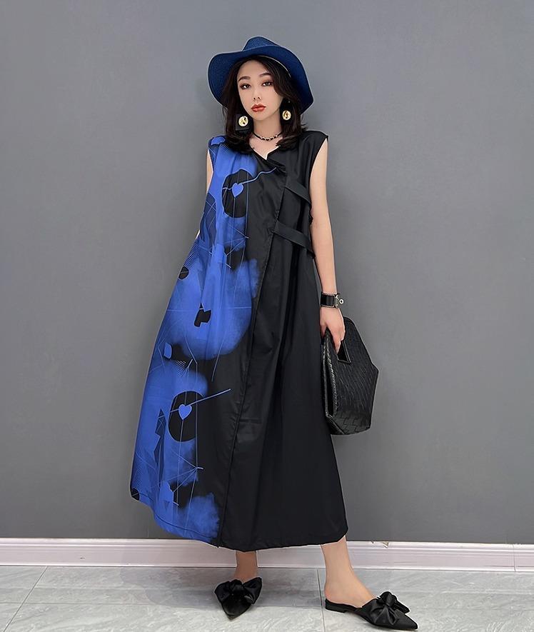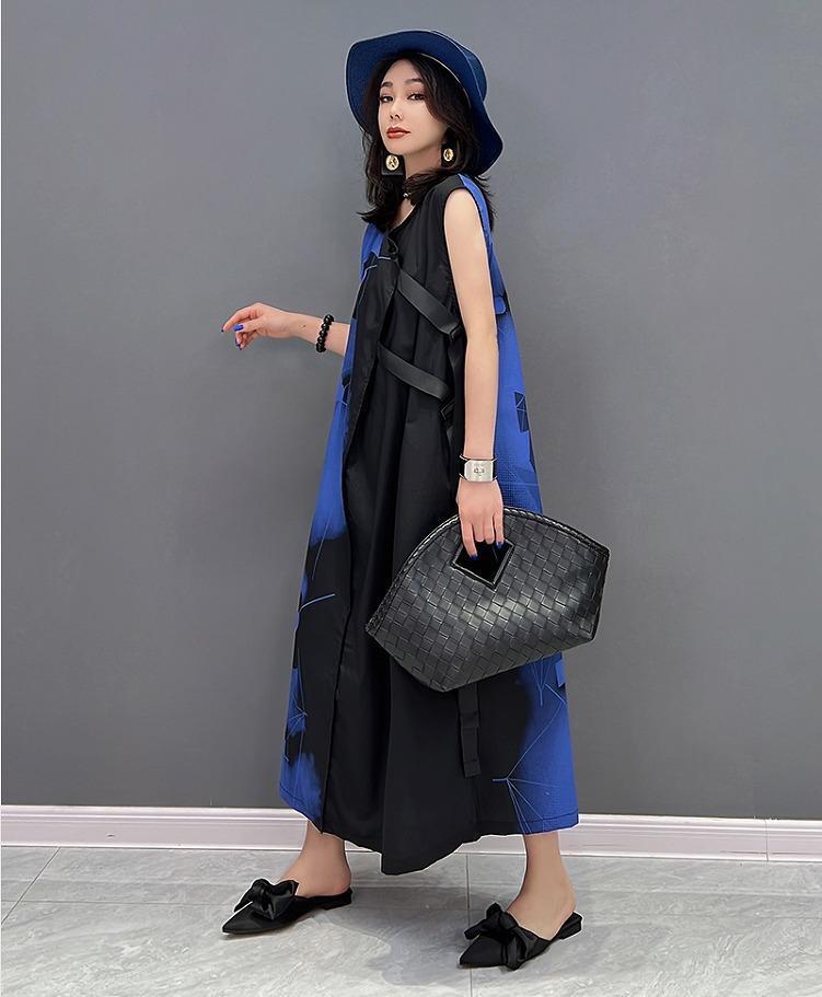 大きいサイズ レディース ワンピース ノースリーブ 春夏 秋 新品 ブルー