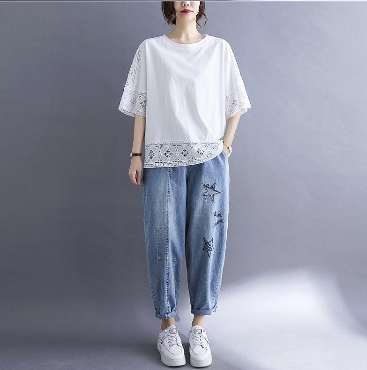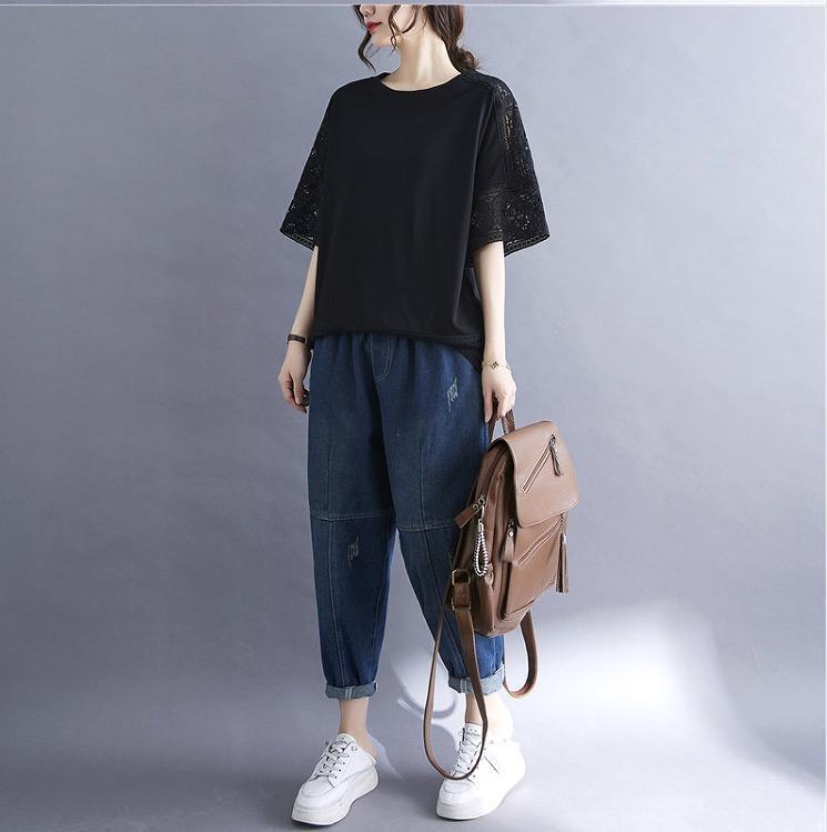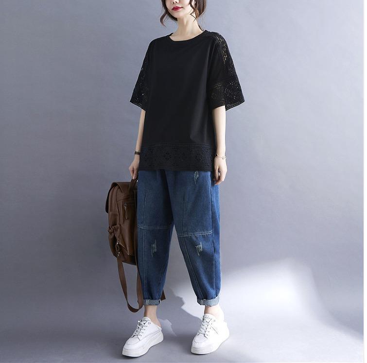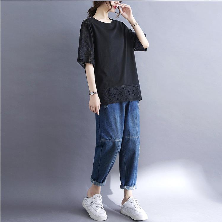 大きいサイズ レディース トップス レース裾 春夏 秋 新品 半袖