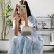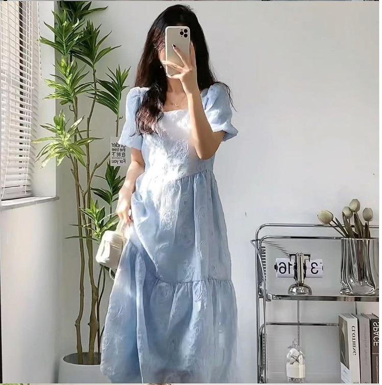 大きいサイズ レディース ワンピース 春夏 秋 新品 半袖 ブルー