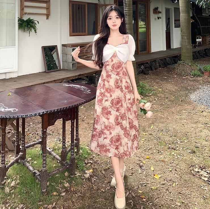 大きいサイズ レディース ワンピース 花柄 リボン 春夏 秋 新品 半袖