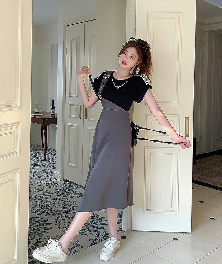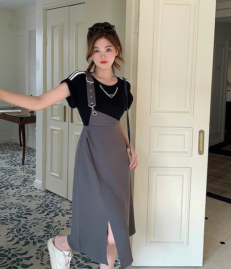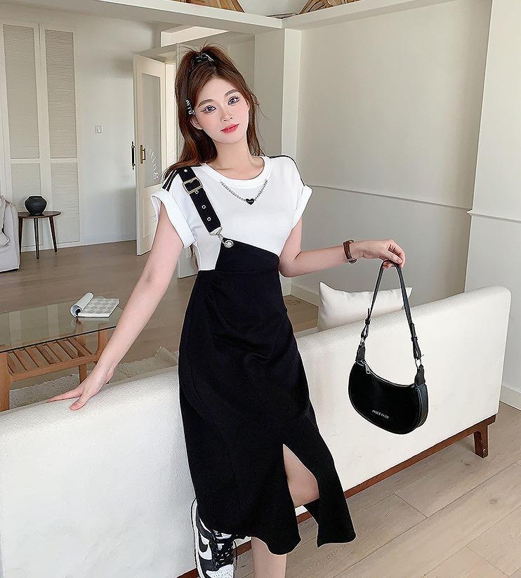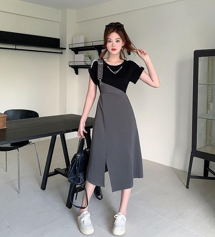 大きいサイズ レディース ワンピース 重ね着風 サロペット 春夏 秋 新品 半袖