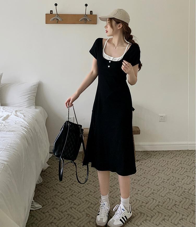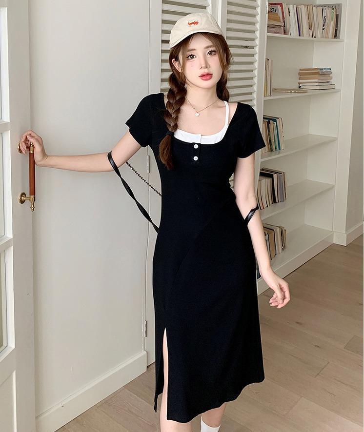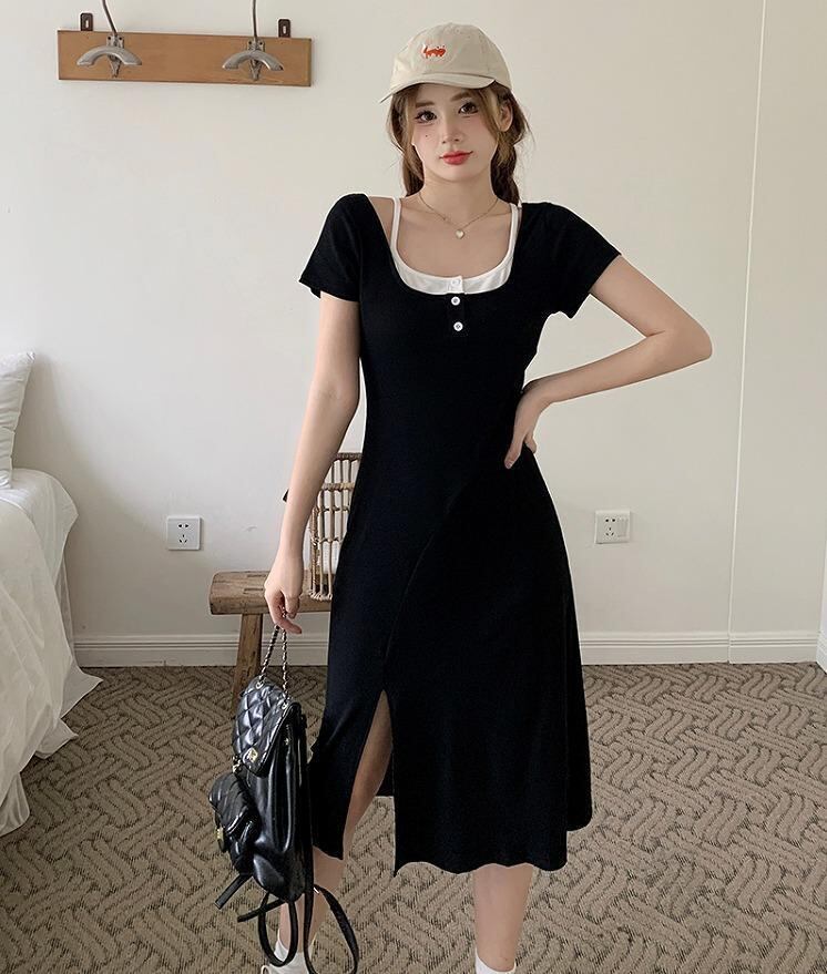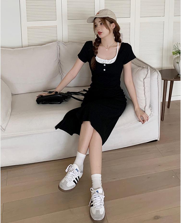 大きいサイズ レディース ワンピース 重ね着風 春夏 秋 新品 半袖