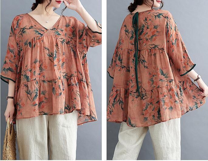 大きいサイズ レディース トップス ゆったり 春夏 秋 新品 五分袖