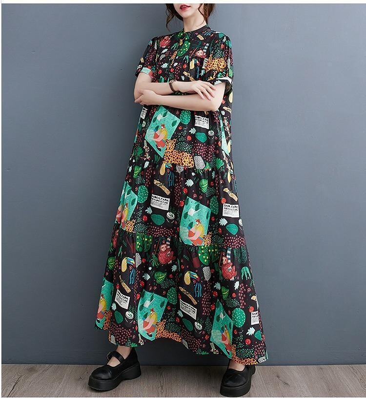 大きいサイズ レディース ロング ワンピース 春夏 秋 新品 半袖