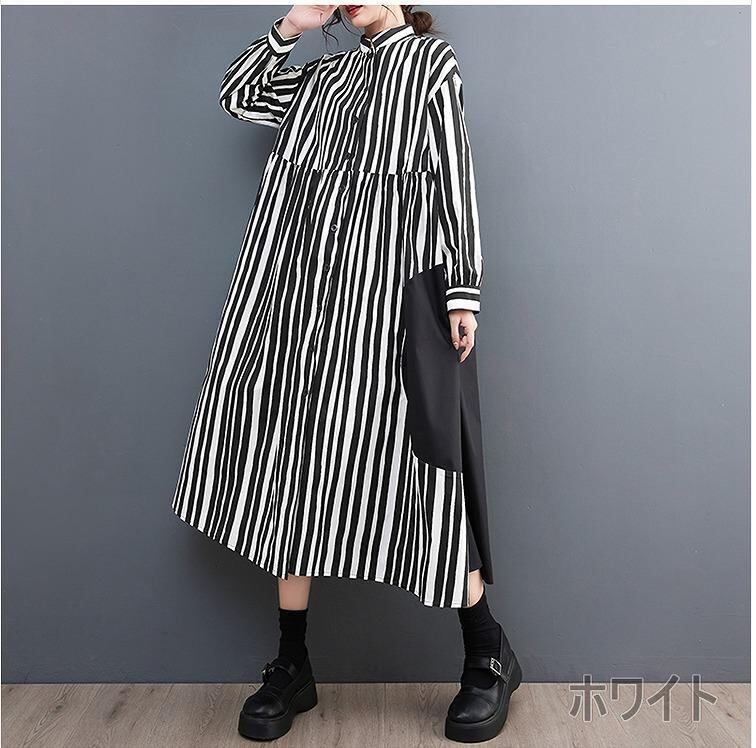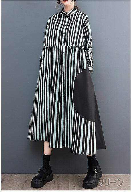 大きいサイズ レディース ロング ワンピース ストライプ 春夏 秋 新品 半袖