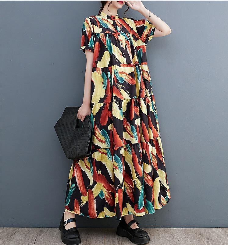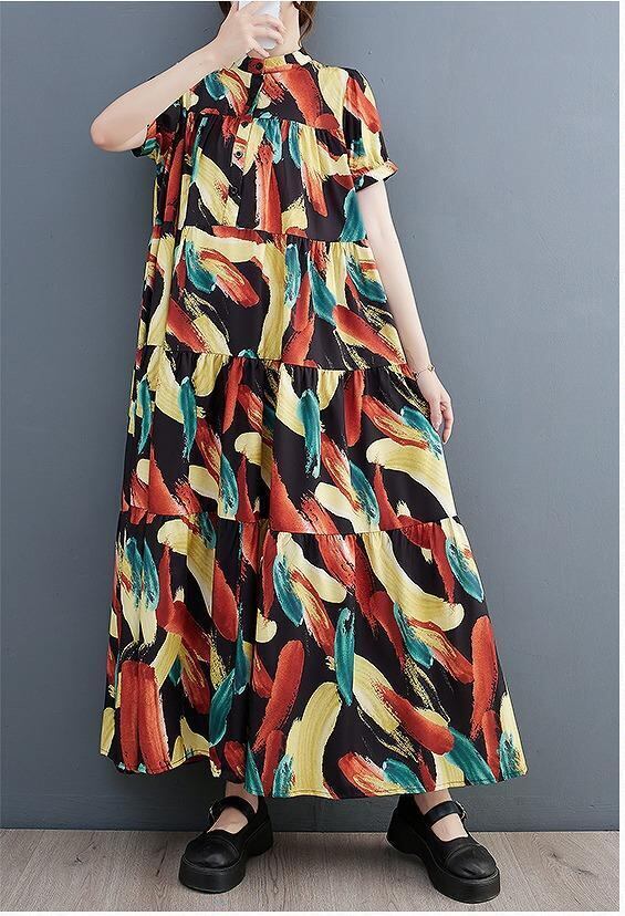 大きいサイズ レディース ロング ワンピース 春夏 秋 新品 半袖