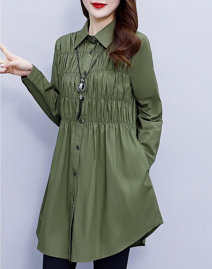 大きいサイズ レディース トップス シャツ 春 秋冬 新品 長袖 グリーン