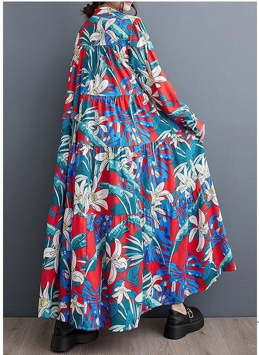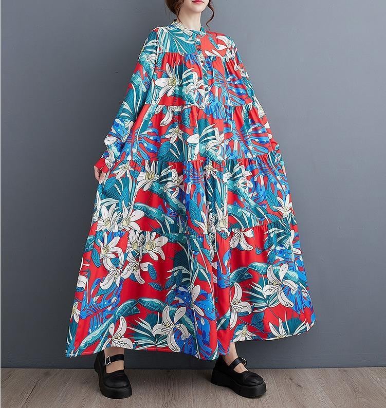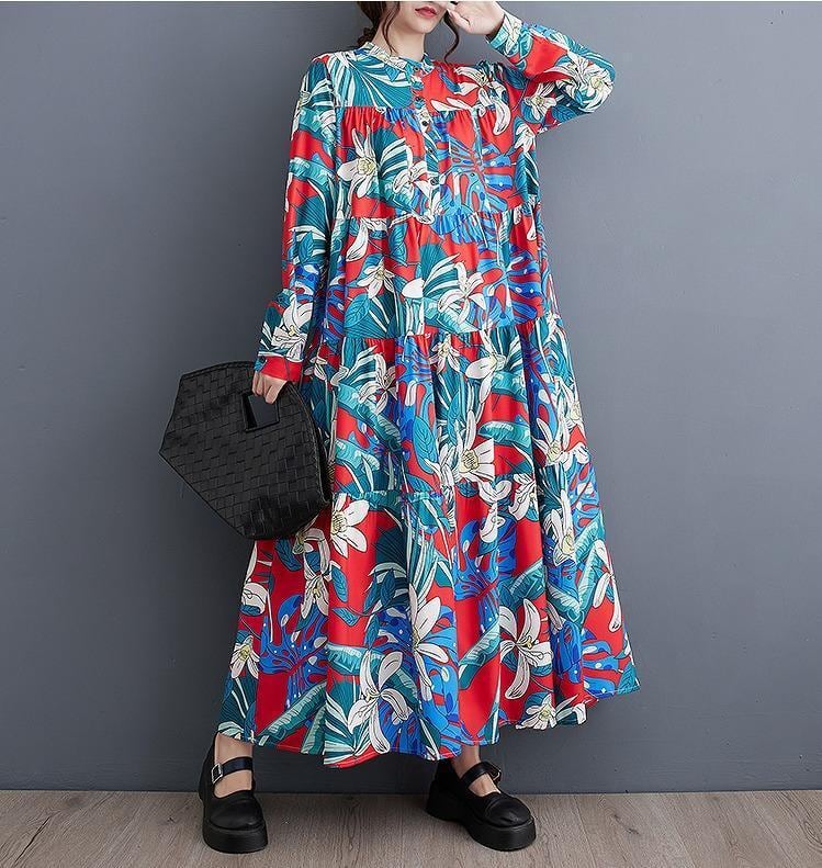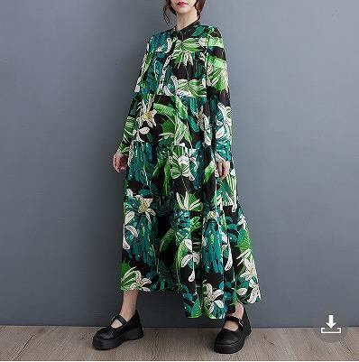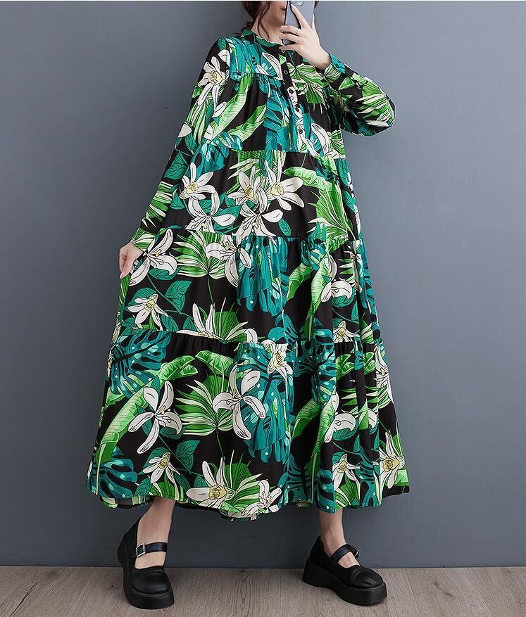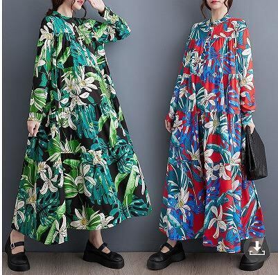 大きいサイズ レディース ロング ワンピース 花柄 春 秋冬 新品 長袖