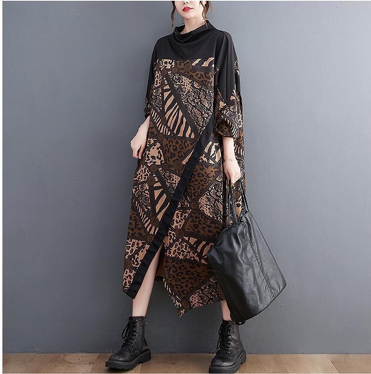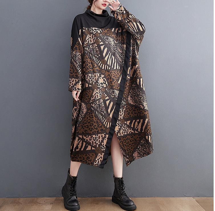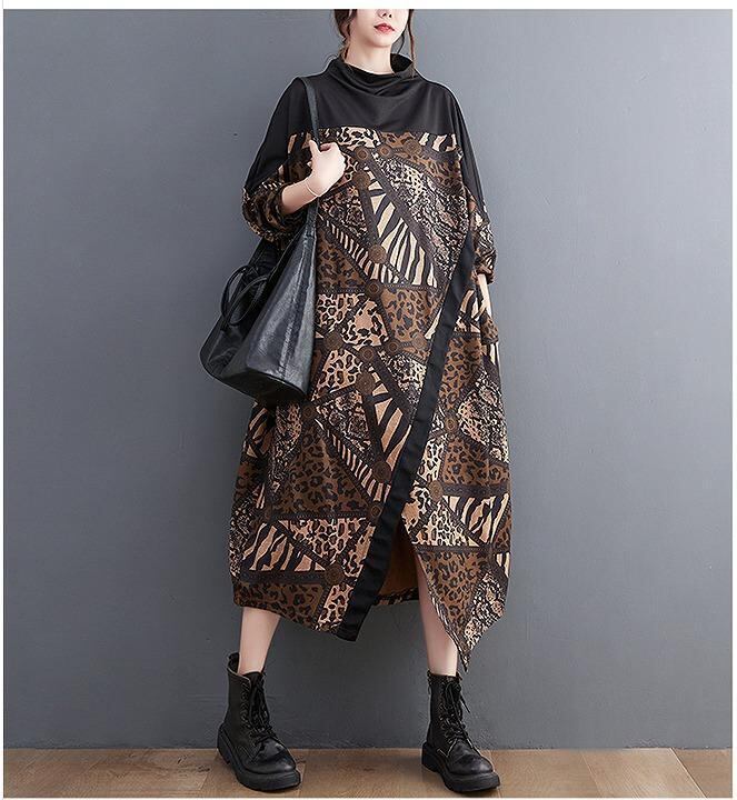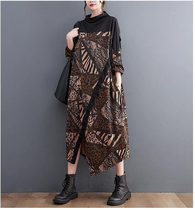 大きいサイズ レディース ワンピース 春 秋冬 新品 長袖 ブラウン