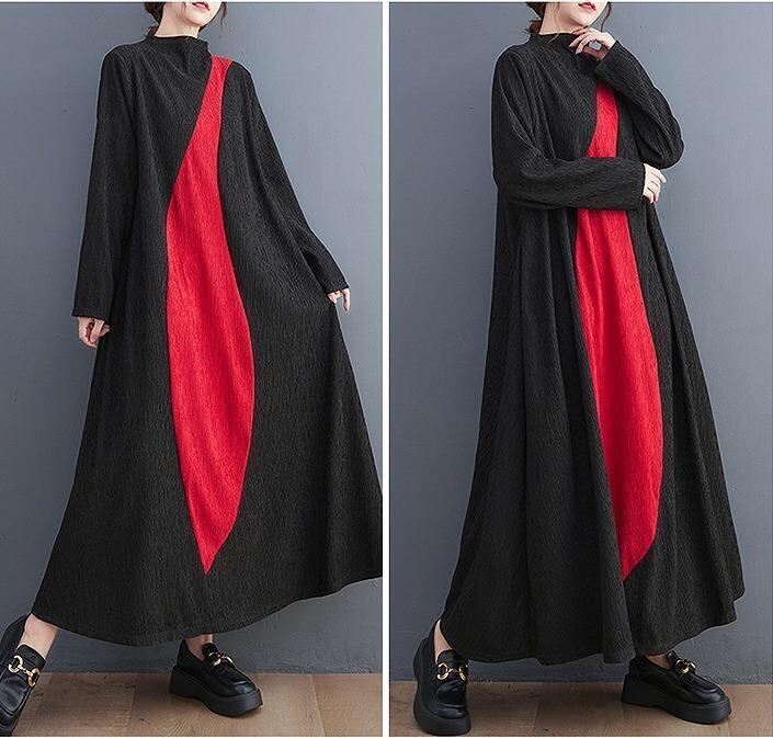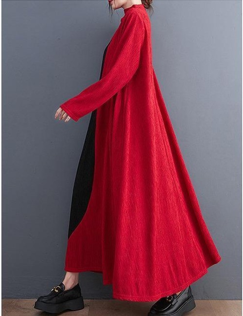 大きいサイズ レディース ワンピース ロング レッド 春 秋冬 新品 長袖
