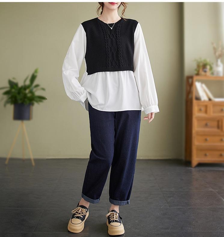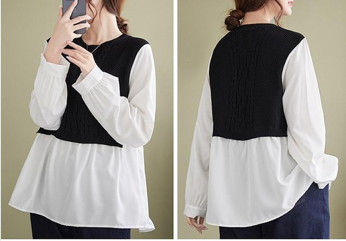 大きいサイズ レディース トップス 異素材 シャツ 春 秋冬 新品 長袖