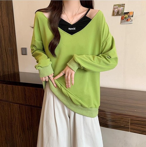 大きいサイズ レディース トップス 重ね着風 春 秋冬 新品 長袖