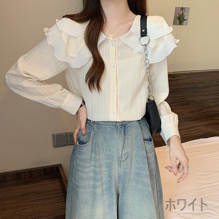 大きいサイズ レディース トップス 襟付き フリル 春 秋冬 新品 長袖