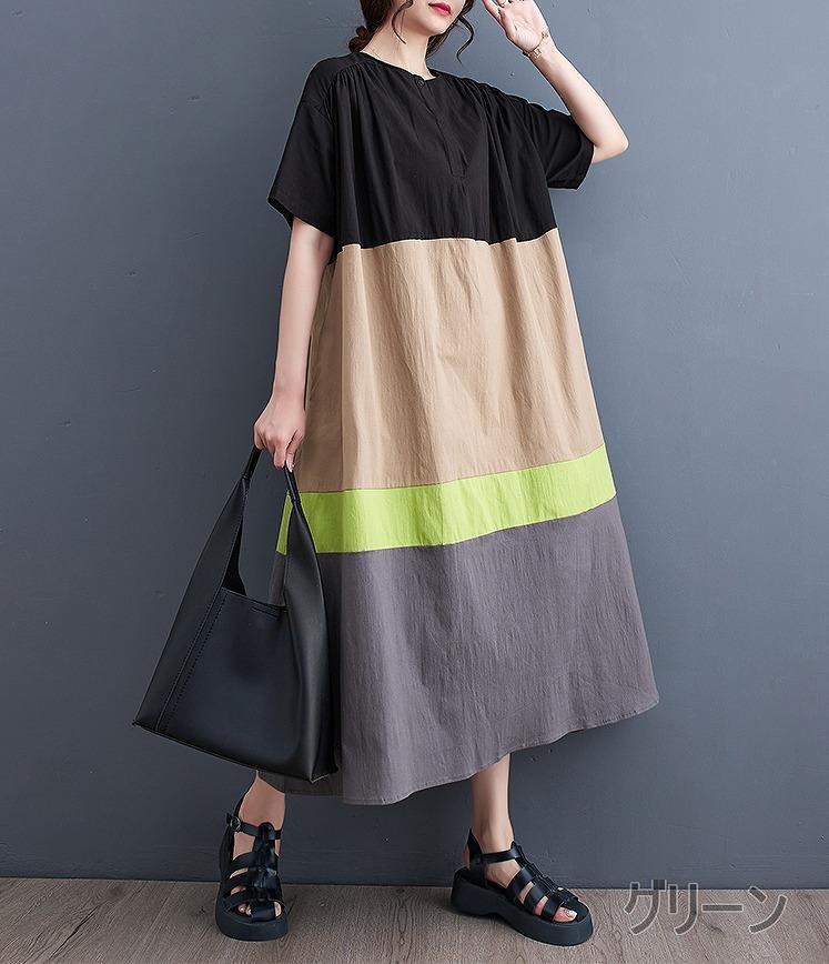 大きいサイズ レディース ワンピース ロング 春夏 秋 新品 半袖