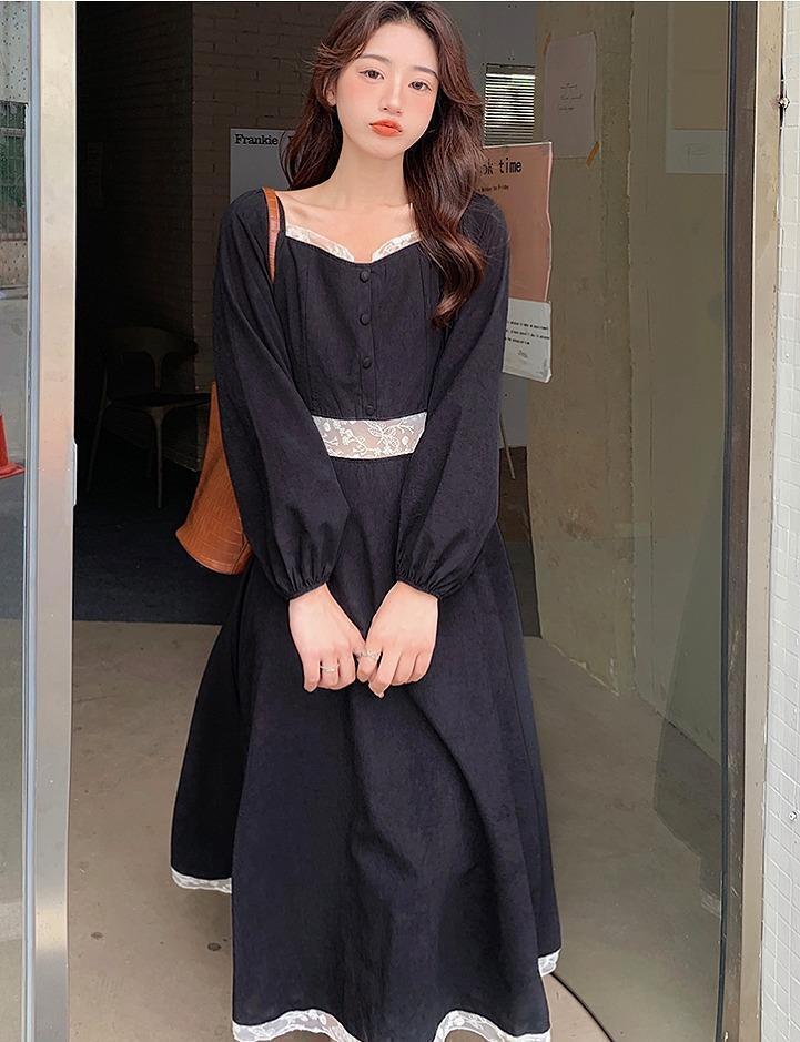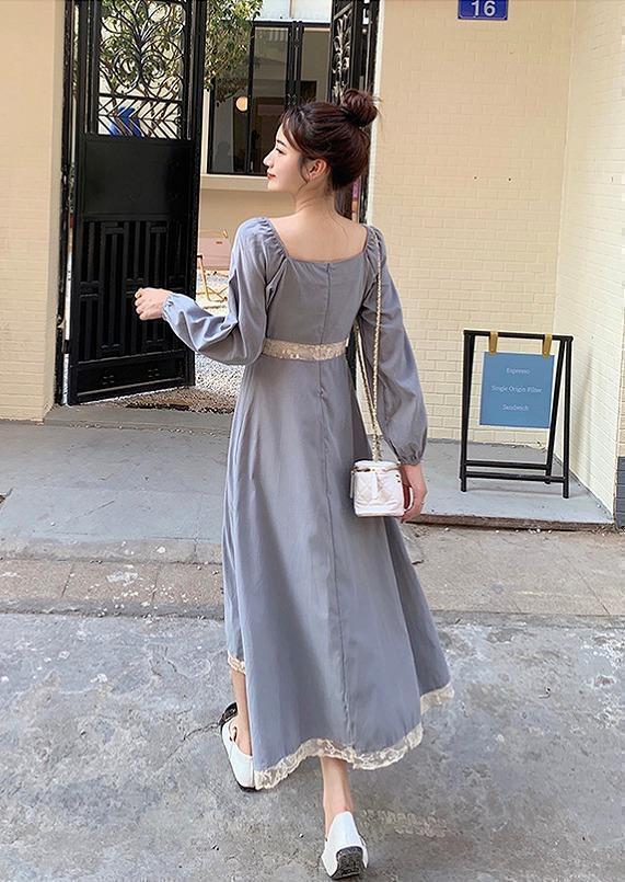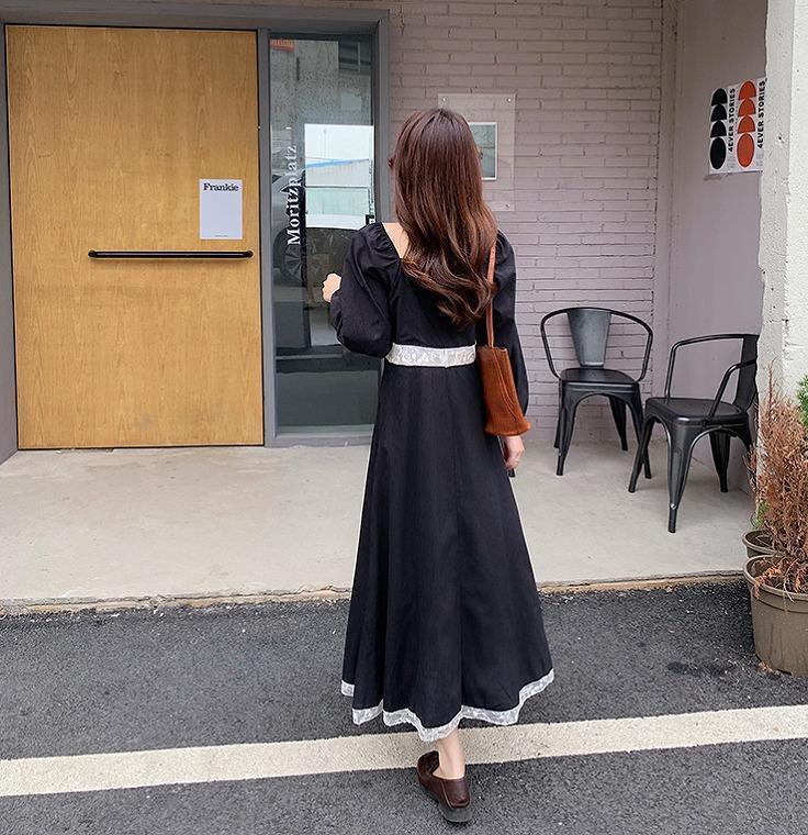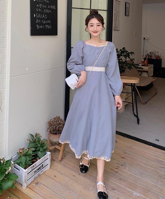 大きいサイズ レディース 春夏 ワンピース スクエアネック 長袖