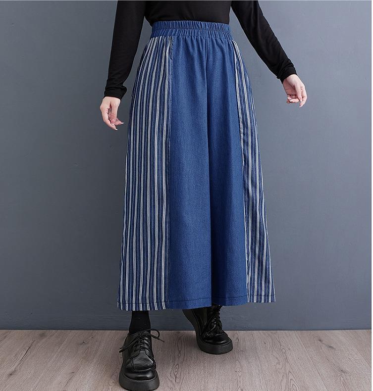 大きいサイズ レディース パンツ ブルー ストライプ ワイドパンツ 春 秋冬 新品