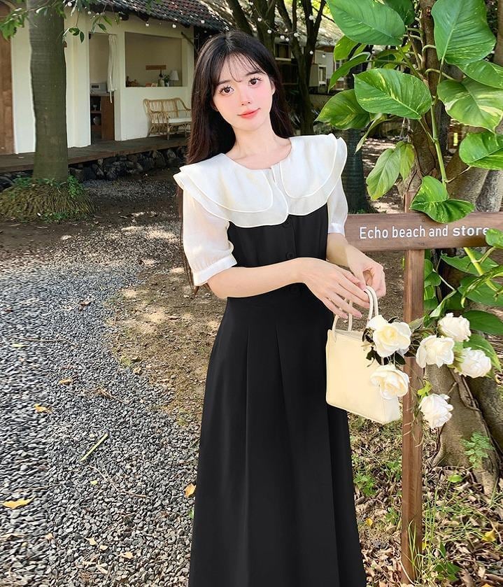 大人かわいい襟付きワンピース!大きいサイズの方にも対応しています。