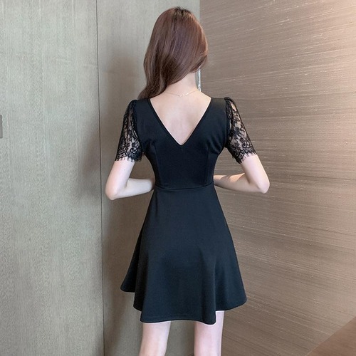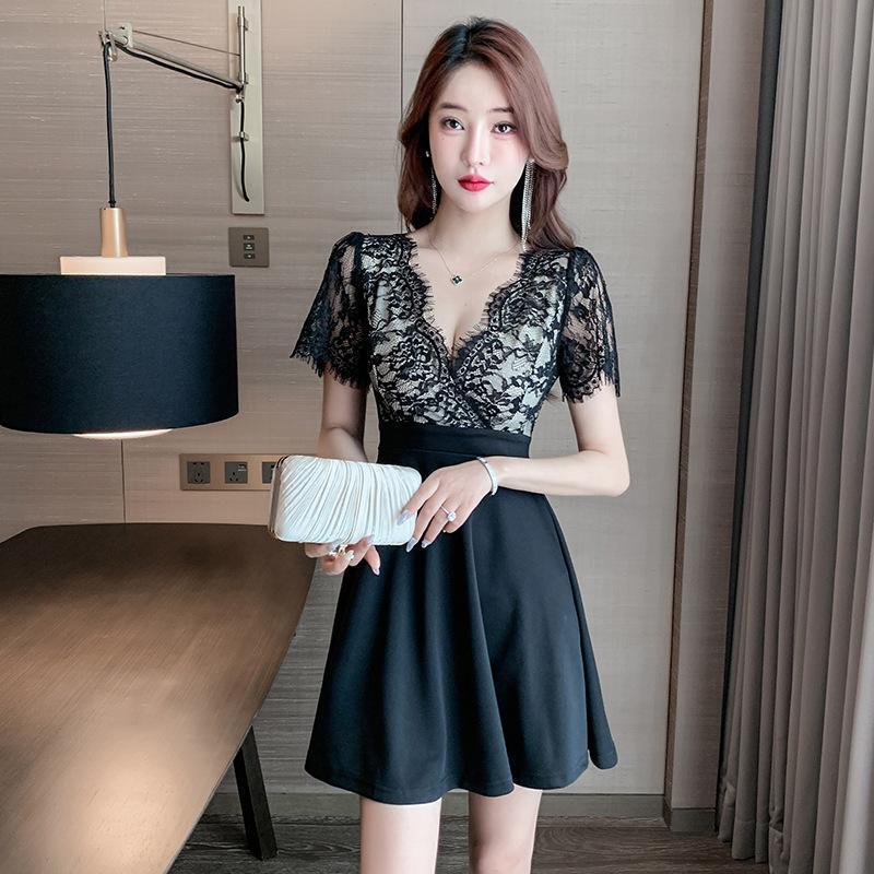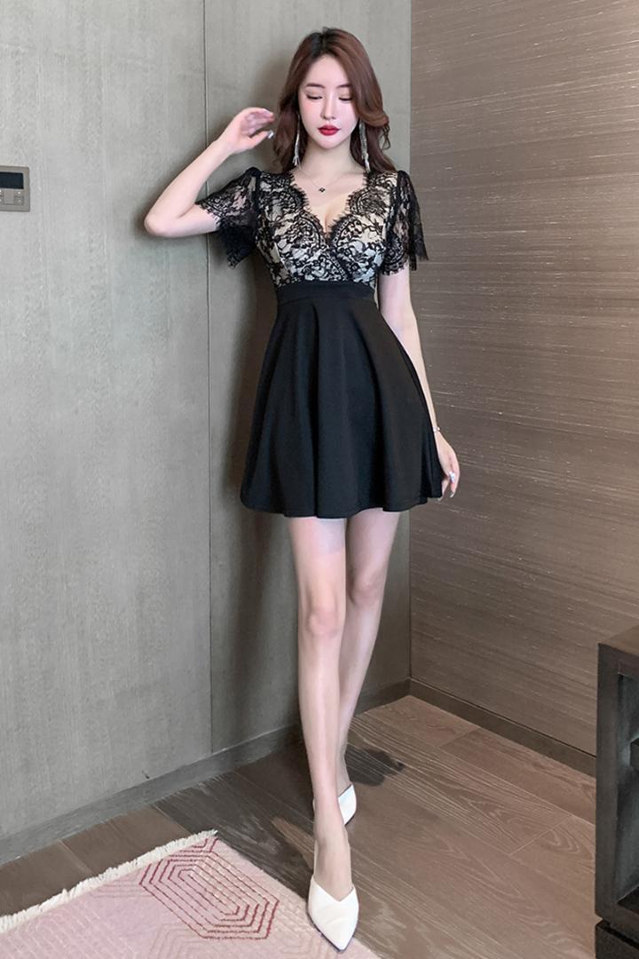 キャバドレス キャバ嬢 胸谷セクシー 前後深V 花柄レース切替 ドレスワンピース