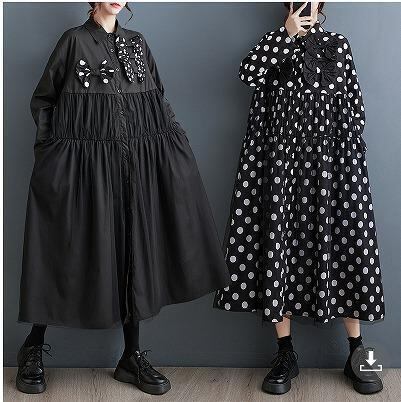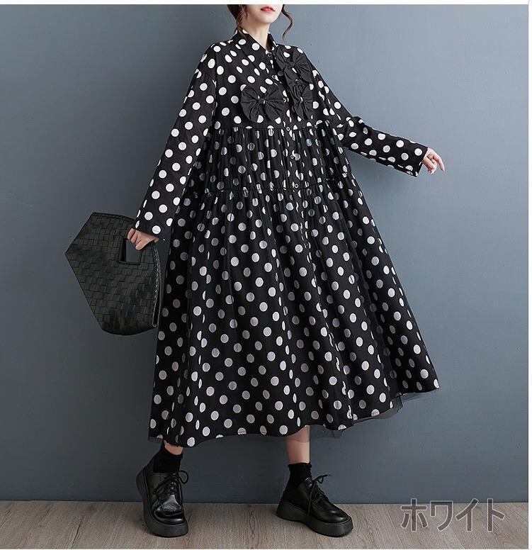 大きいサイズ レディース ロング ワンピース ドット 春 秋冬 新品 長袖