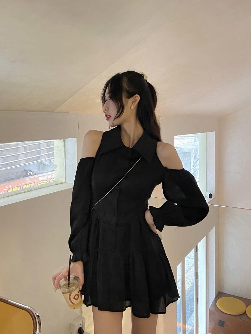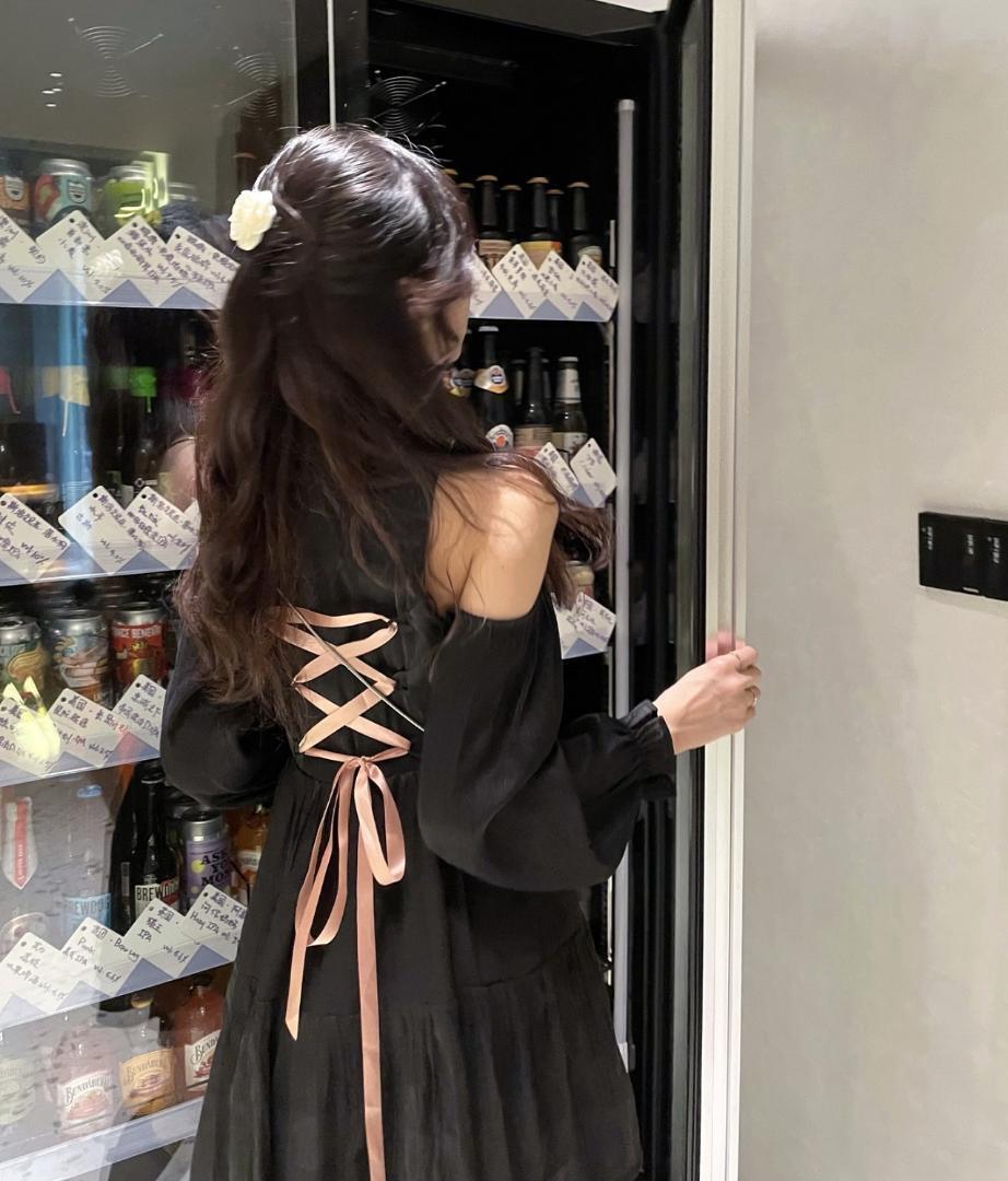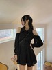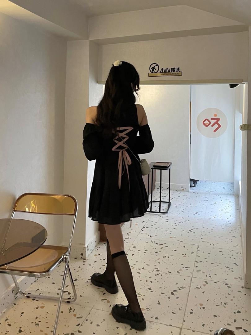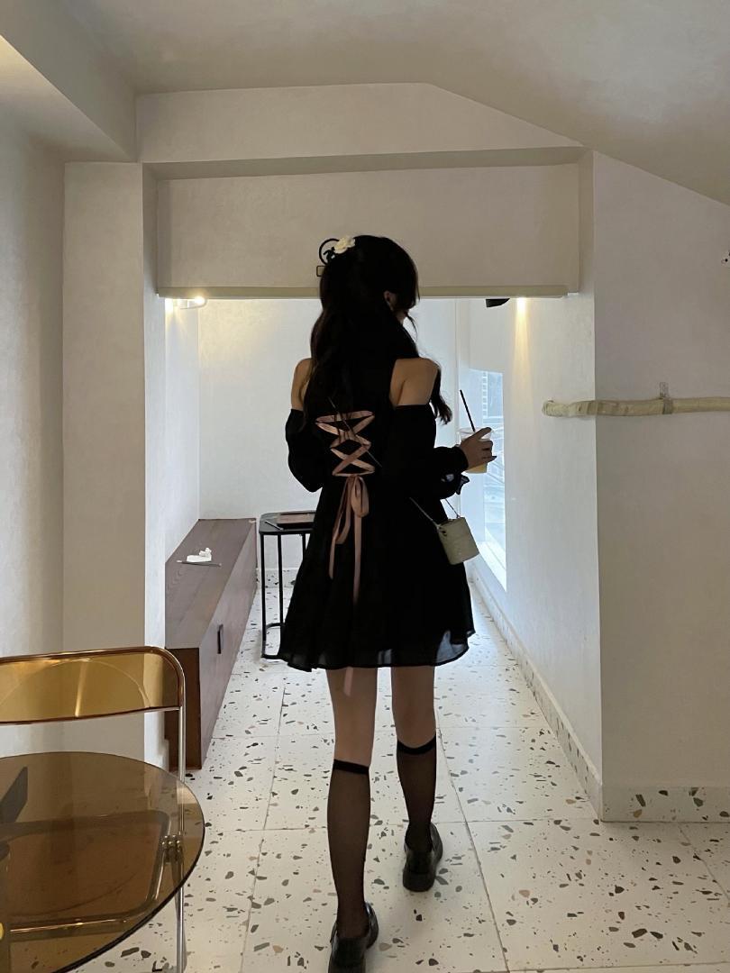 背中編み上げリボン セクシー肩出し ミニ丈ワンピース