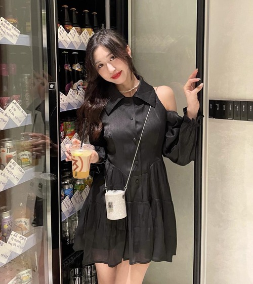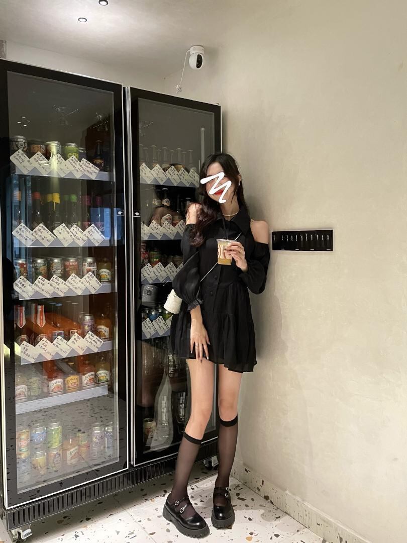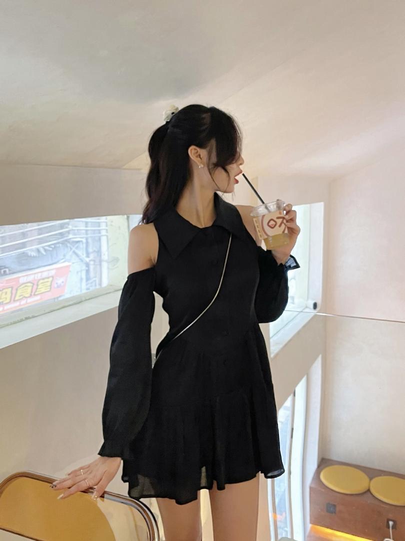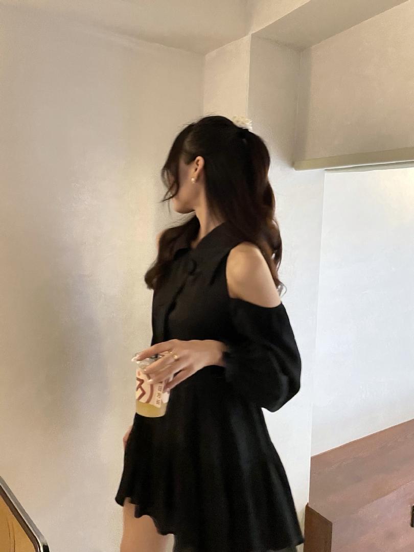 背中編み上げリボン セクシー肩出し ミニ丈ワンピース
