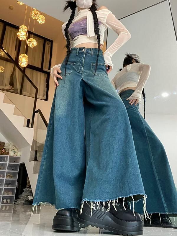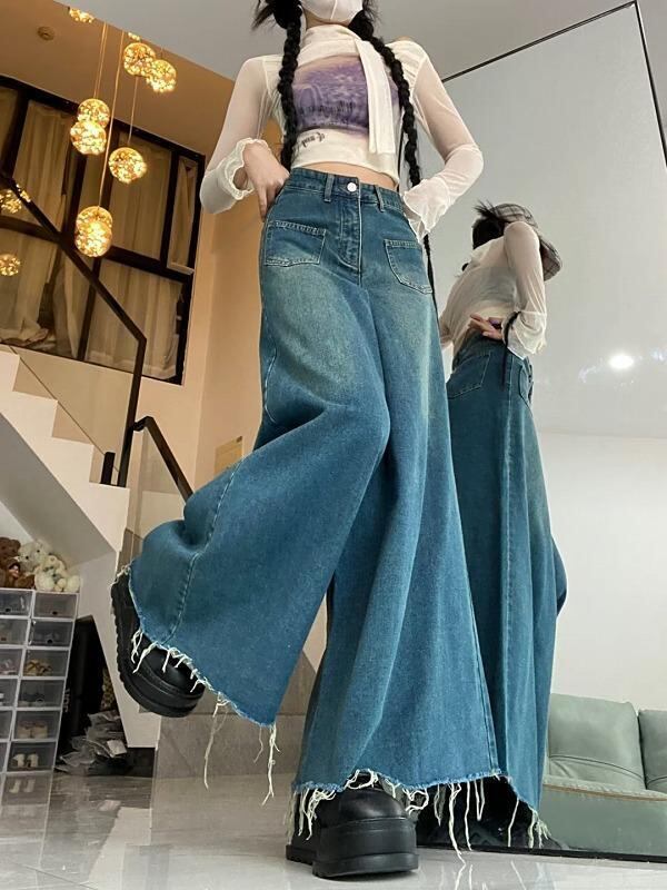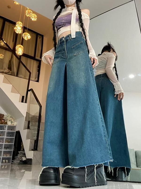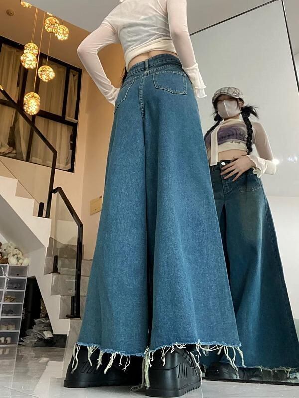 大きいサイズ レディース ロング スカート デニム 春 秋冬 新品 カットオフ 切りっぱなし