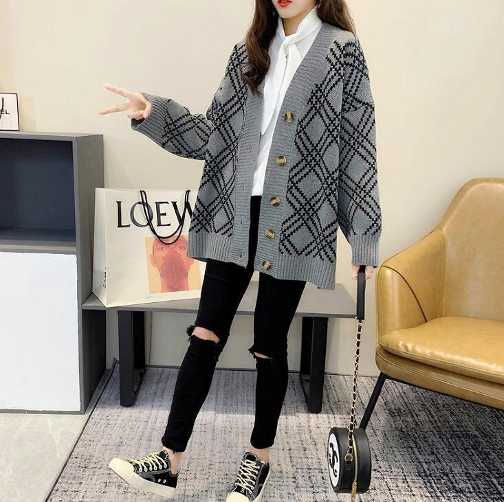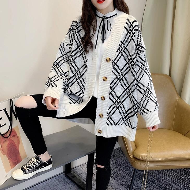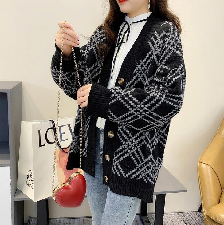 大きいサイズ レディース ニット カーディガン チェック柄 春 秋冬 新品 長袖